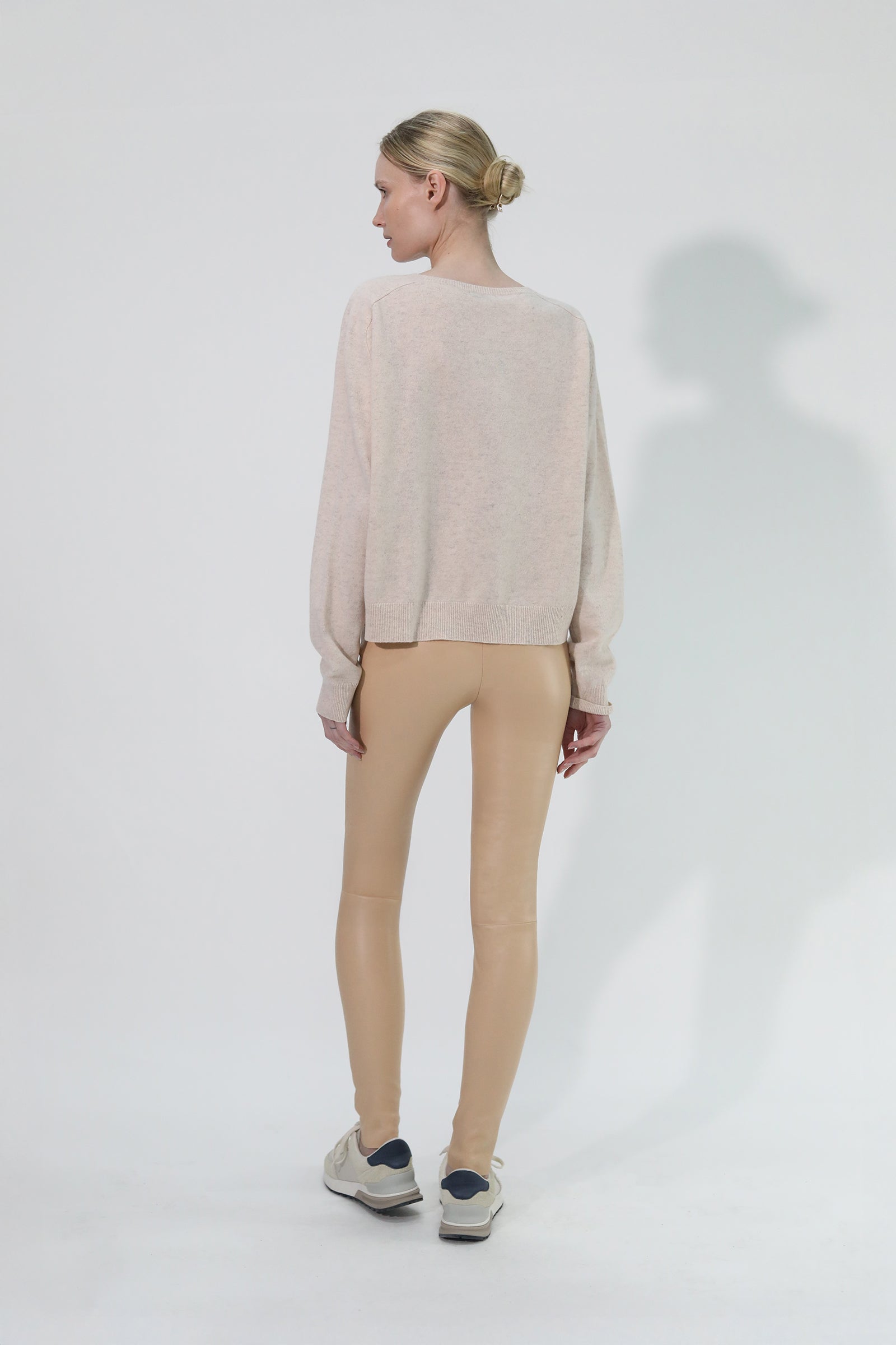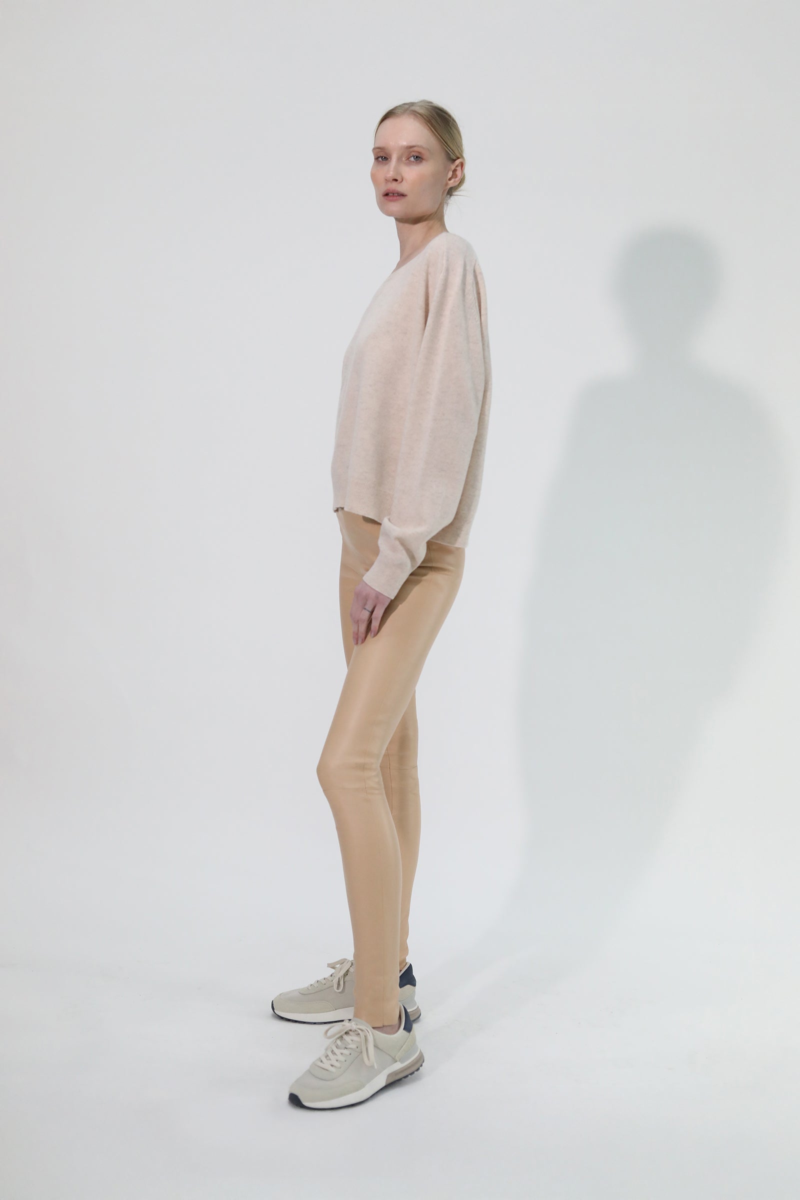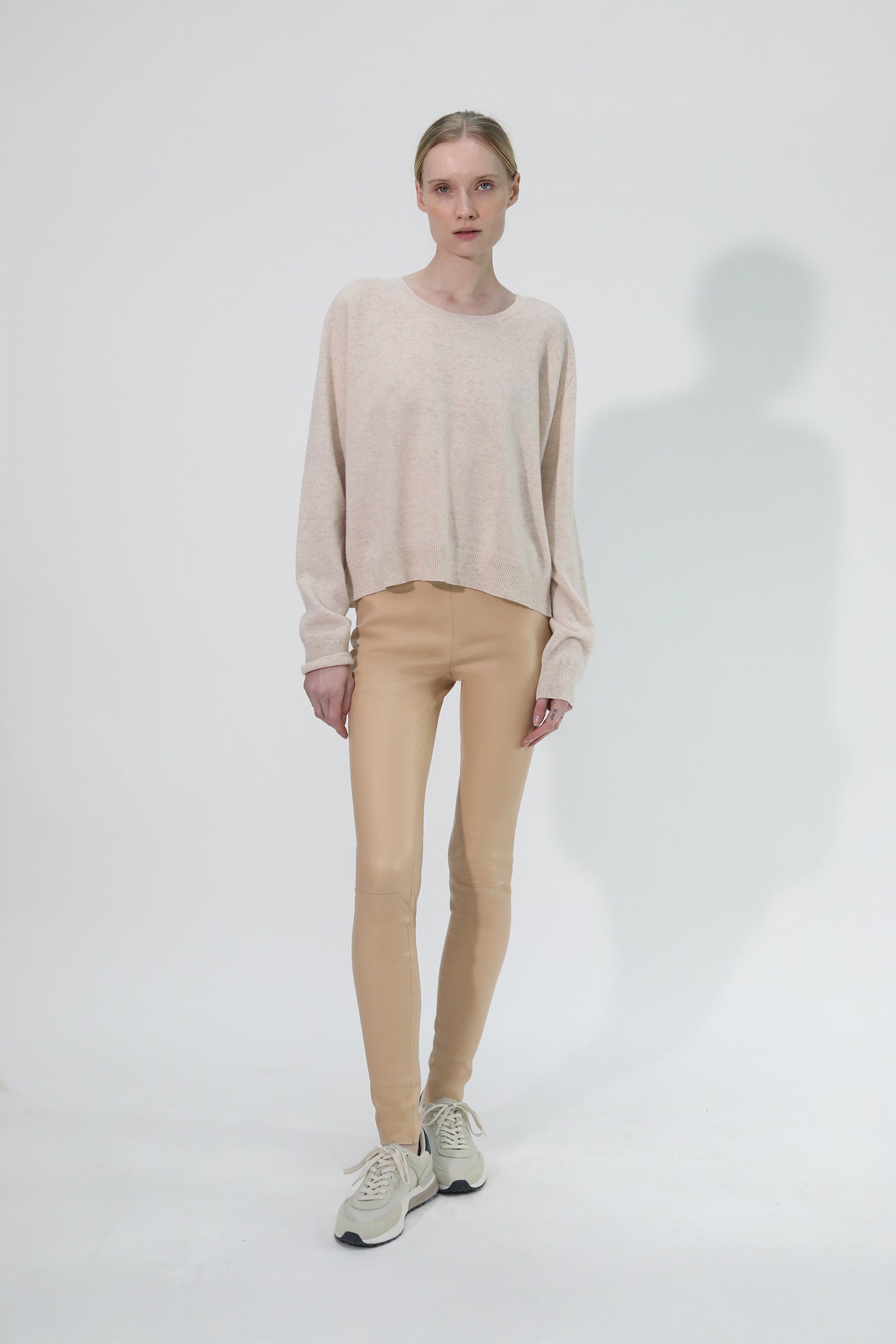 Basique incontournable, ce pull en cachemire femme accompagne toutes les occasions : au bureau avec une jupe crayon en maille, en ville avec un jean en denim, en soirée avec notre iconique legging en cuir d’agneau, ou encore à la maison avec un pantalon en cachemire assorti.