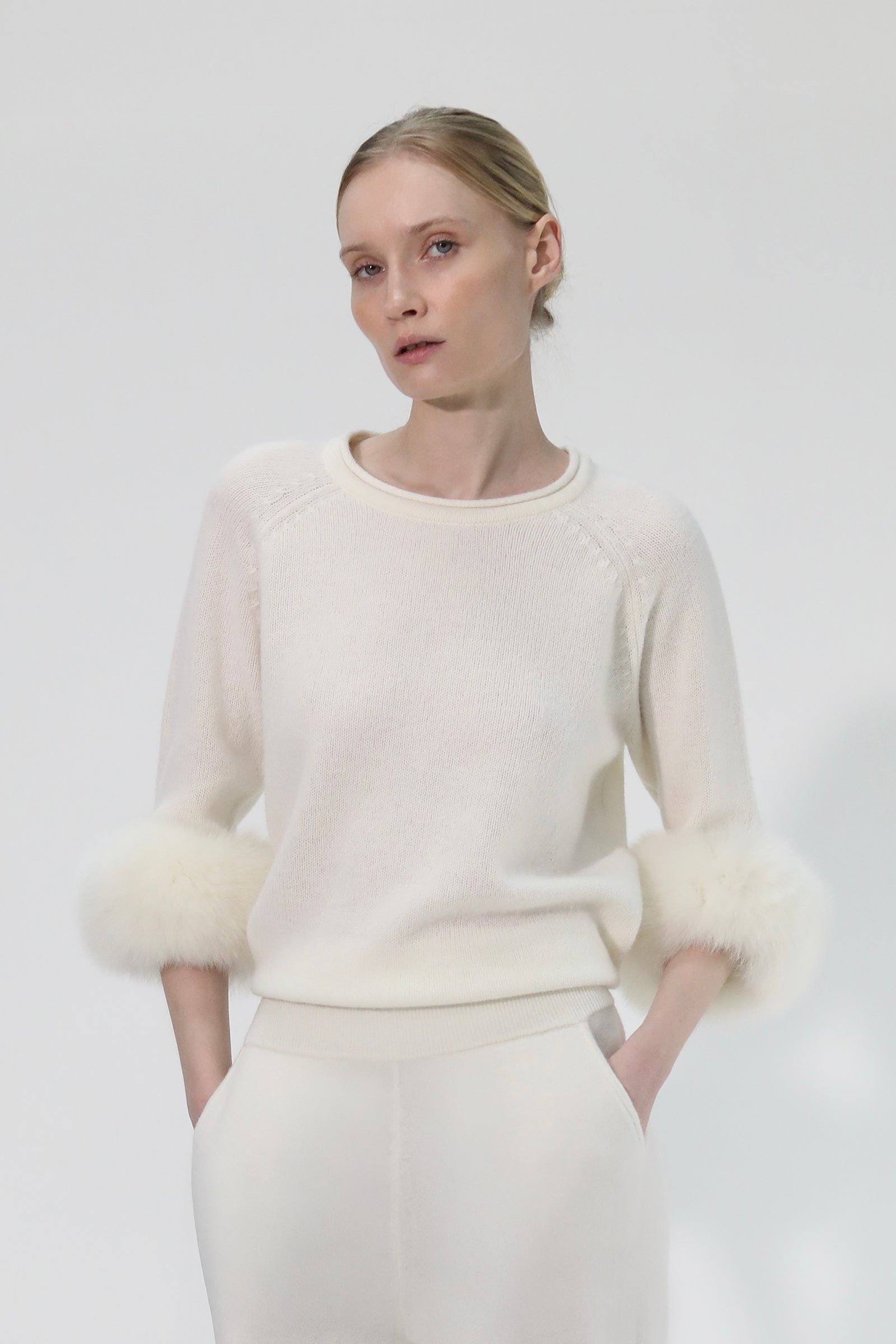 Pull en cachemire avec manchons en fourrure M&M By MAX&MOI