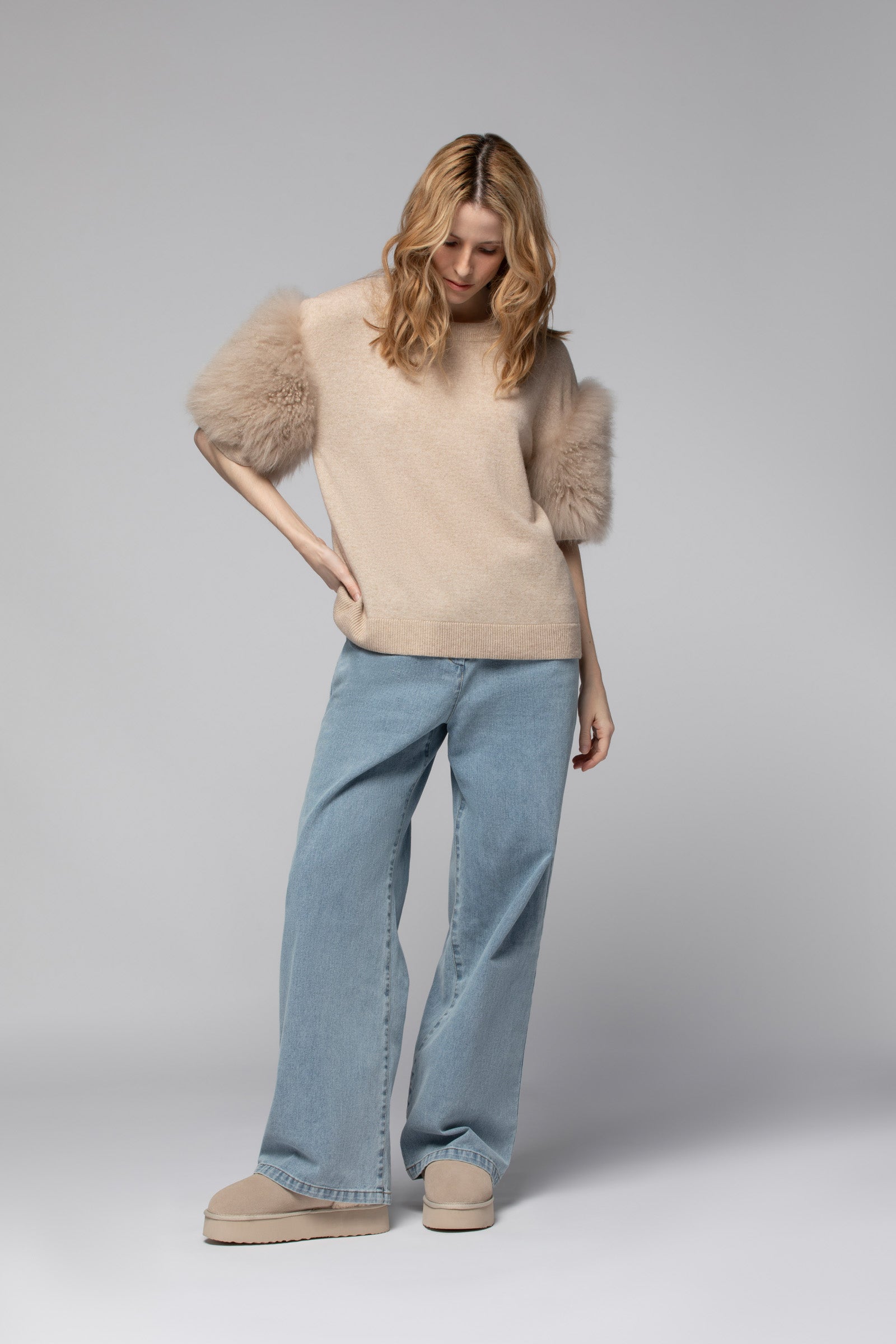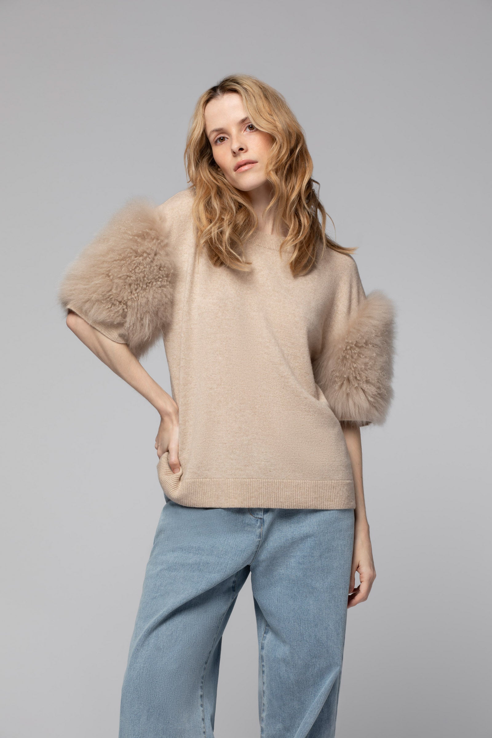 - Manches courtes en fourrure de chèvre