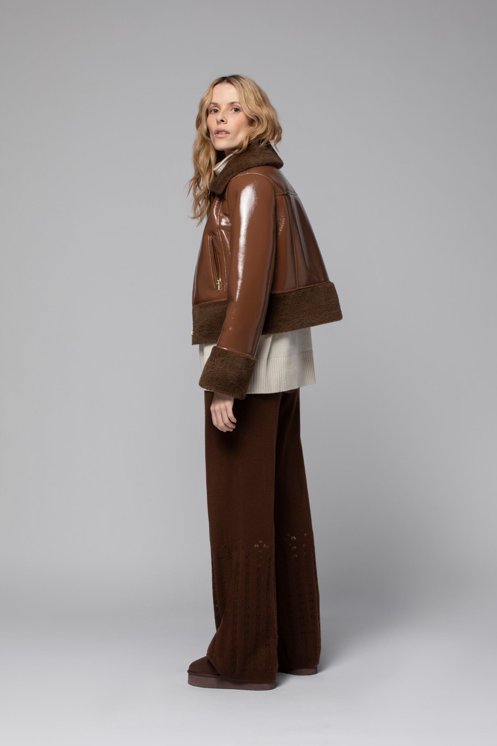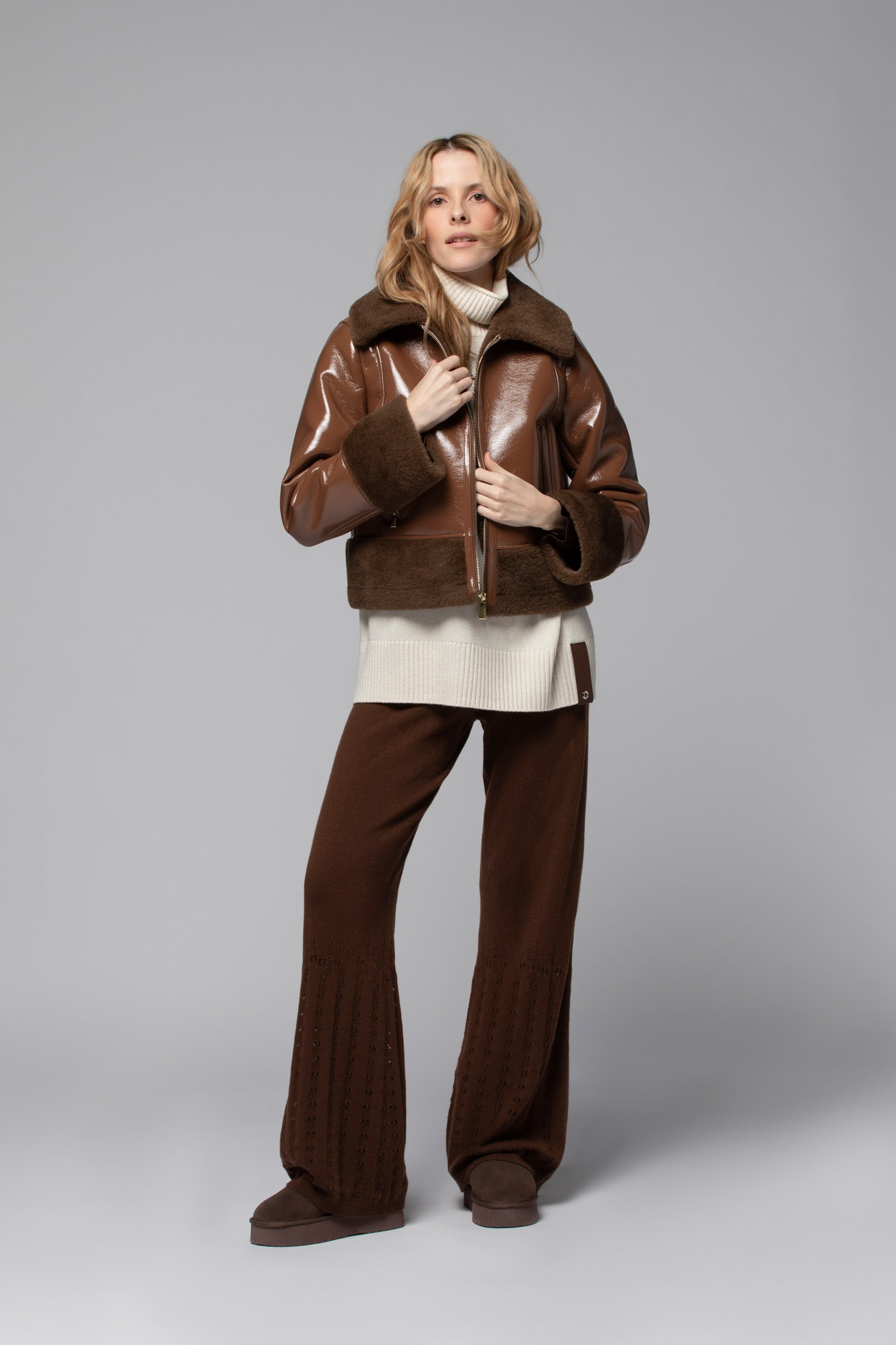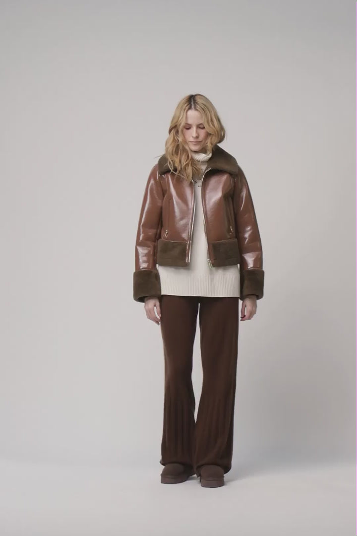 Inspirée de l’iconique blouson aviateur, notre veste VINTA s’impose comme un must-have de la saison. Ultra-désirable, elle associe un vinyle au fini brillant à des finitions en fausse fourrure Furever, à la texture duveteuse. Son col oversize, sa fermeture zippée dorée, ses poignets généreux et sa coupe courte structurée signent un vestiaire résolument contemporain. Aussi pratique que sophistiquée, elle est dotée de larges poches zippées sur le devant, qui parachèvent son design avec audace et dessinent une silhouette affirmée.