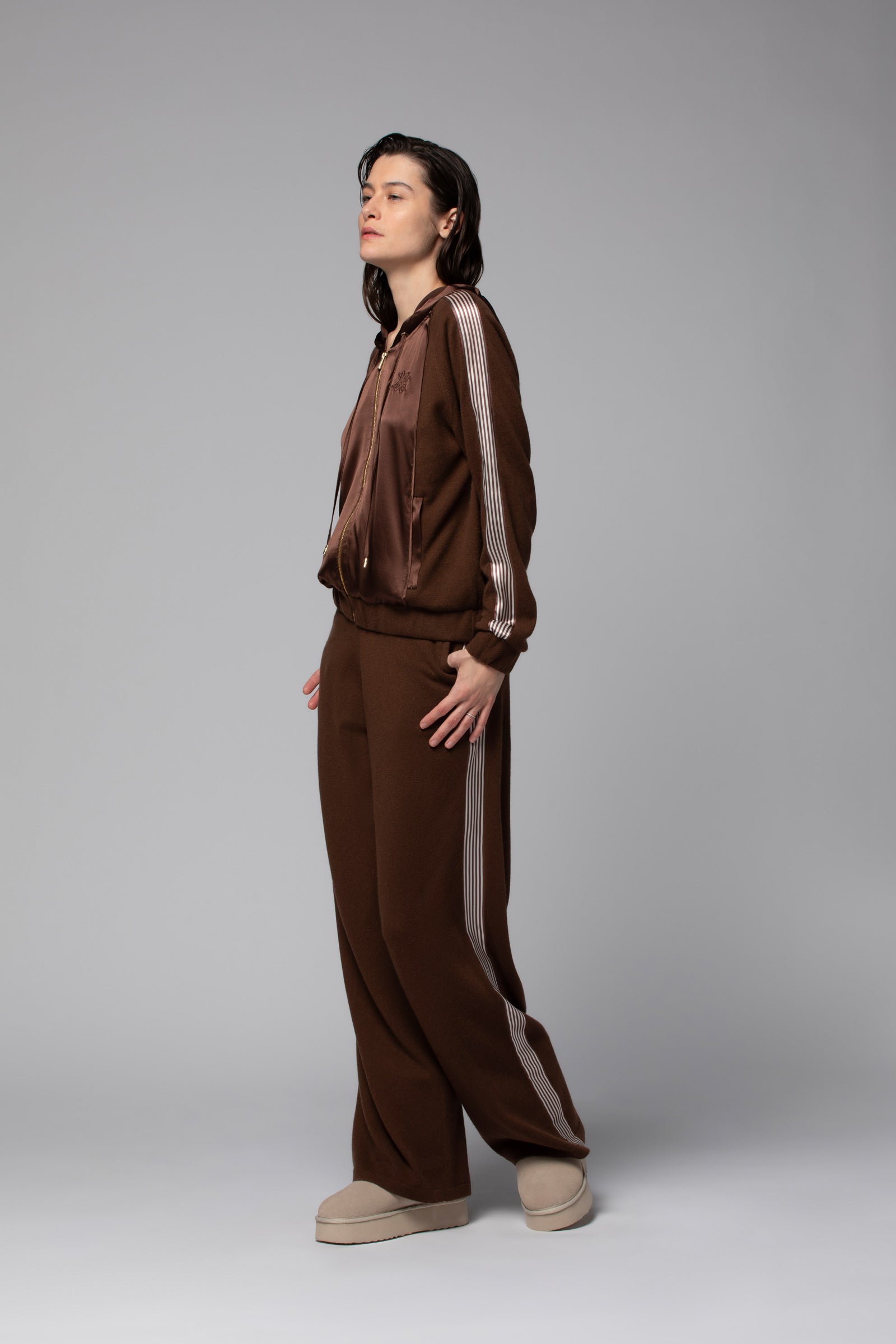 Avec notre modèle GINNA, le gilet à capuche se fait raffiné. Confectionné dans un doux mélange de laine et cachemire, il se joue des contrastes grâce à ses empiècements en soie stretch, à l'éclat irrésistible. Avec sa coupe droite, resserrée à la taille par un élastique, ses détails en soie sporty-chic sur les manches, sa capuche légère et son zip pratique, ce gilet bi-matière coche toutes les cases du parfait gilet de mi-saison. Une broderie ton sur ton du monogramme MAX&MOI signe cette création avec élégance.