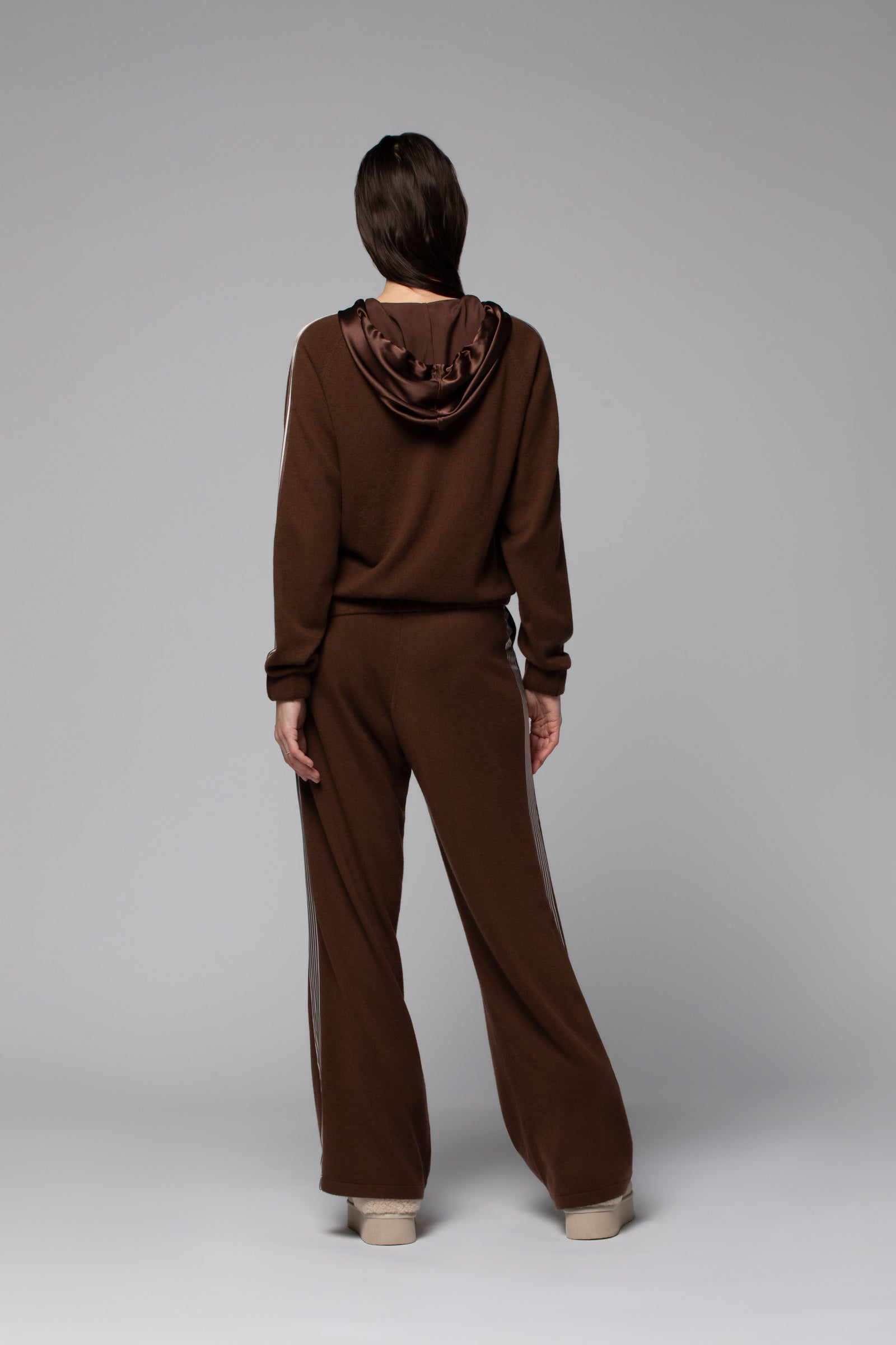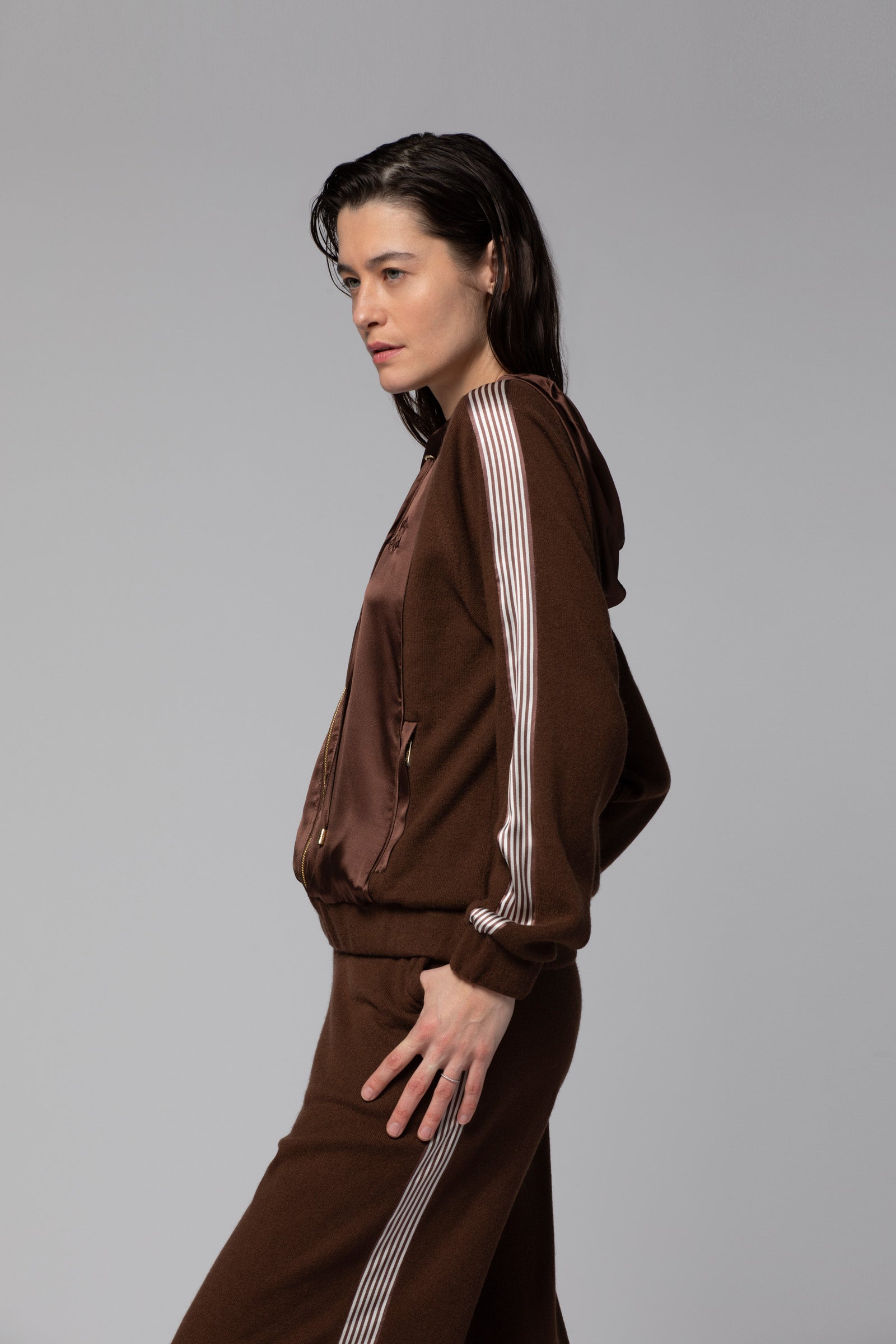Ce gilet à capuche pour femme se décline en chocolat en gris clair.