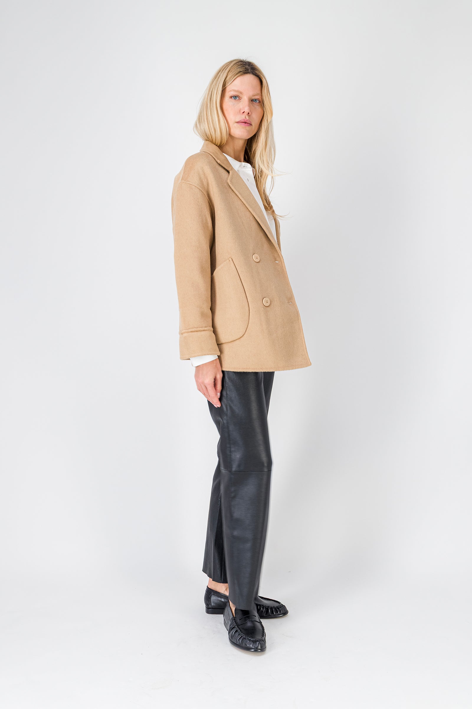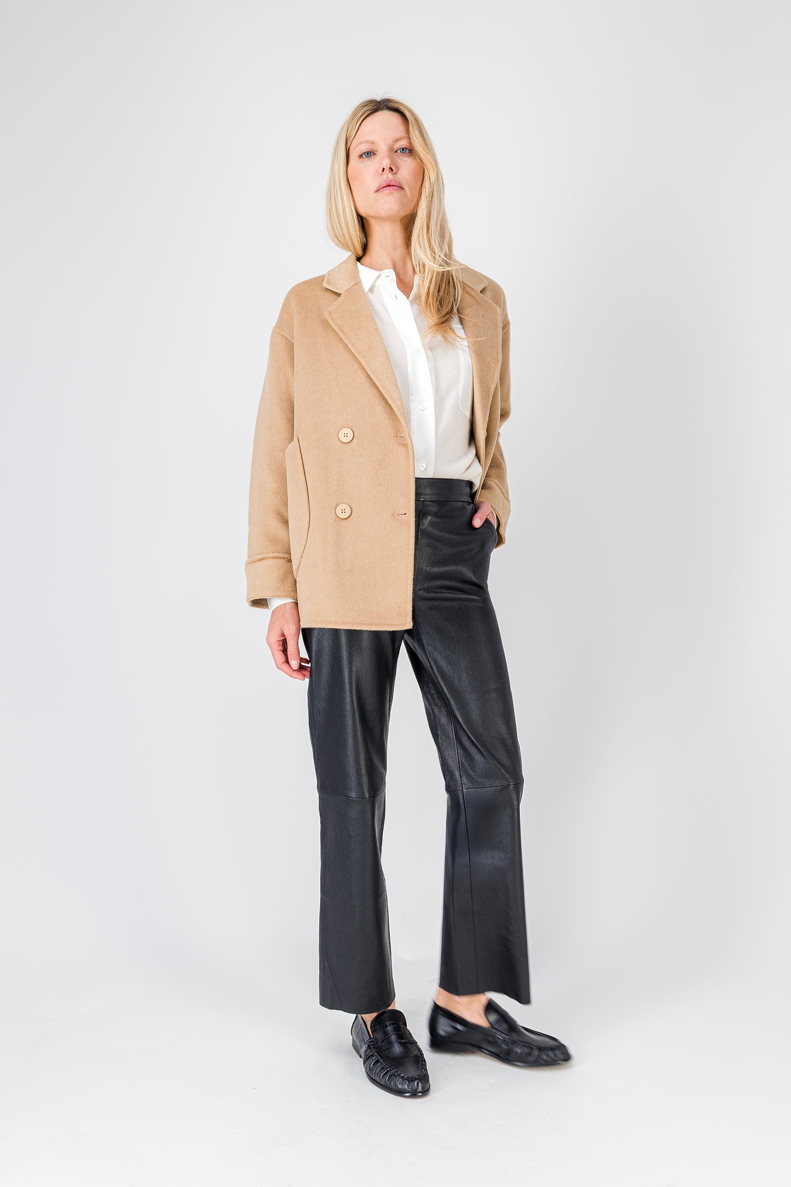 Cette saison, l’indispensable manteau oversize se réinterprète dans une version plus courte, inspirée de l’esprit caban, idéale pour l’entrée de saison et les silhouettes plus menues. Confectionné dans un lainage chaud, doux et souple, le manteau court MILLY se porte comme une veste, avec naturel et modernité. Sa coupe droite, son col à revers, ses deux grandes poches plaquées à l’avant et sa fermeture croisée à double boutonnage en font une pièce à la fois structurée et facile à vivre. Un manteau court esprit caban, pensé pour accompagner le vestiaire de mi-saison avec élégance. Conseil mode : A porter en superposition par-dessus une doudoune ou un hoodie à capuche, ou avec un col roulé en cachemire durant les journées froides. Ce manteau court pour femme en laine double face existe également en coloris beige et noir. - Manteau court esprit caban - Coupe droite - Col à revers - Fermeture à double boutonnage croisé - Deux poches plaquées à l'avant - E26MM DF661386-CAMEL