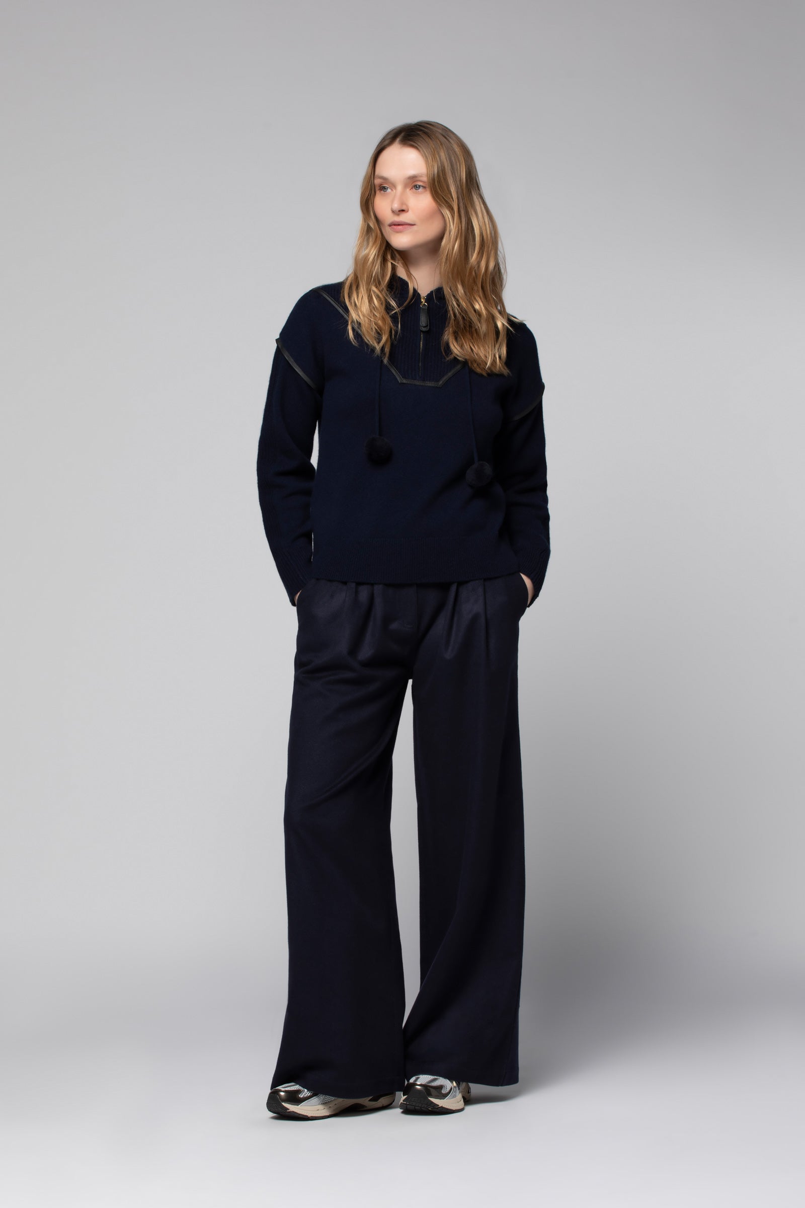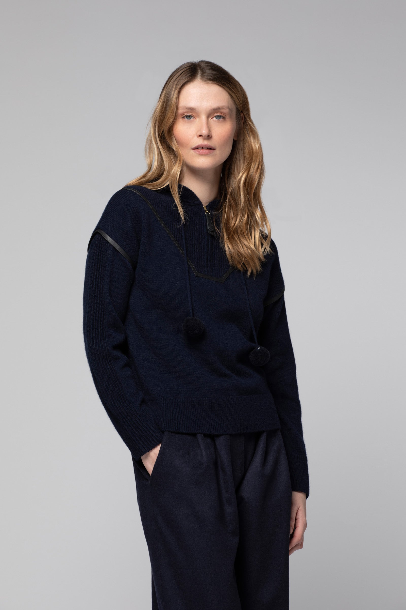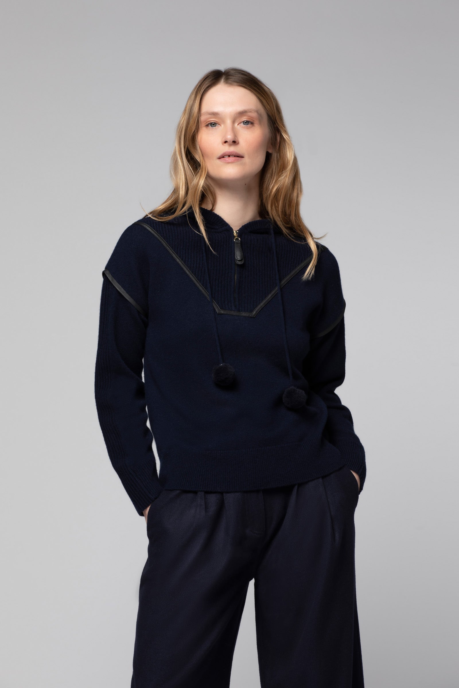 Notre pull à capuche PELOISE est un modèle irrésistible avec ses pompons amovibles en fausse fourrure Furever. Confectionné dans un superbe mélange de laine et cachemire, il enveloppe le corps avec douceur et assure un confort absolu. Son col zippé dévoile un plastron en maille fantaisie, qui habille également ses manches et apporte une touche graphique tout en finesse. Fidèle au savoir-faire de la Maison MAX&MOI, il se pare de superbes bandes en cuir qui sculptent l'allure et insufflent un esprit résolument contemporain. Doté d’une capuche généreuse, ce pull en cachemire pour femme conjugue style et praticité.