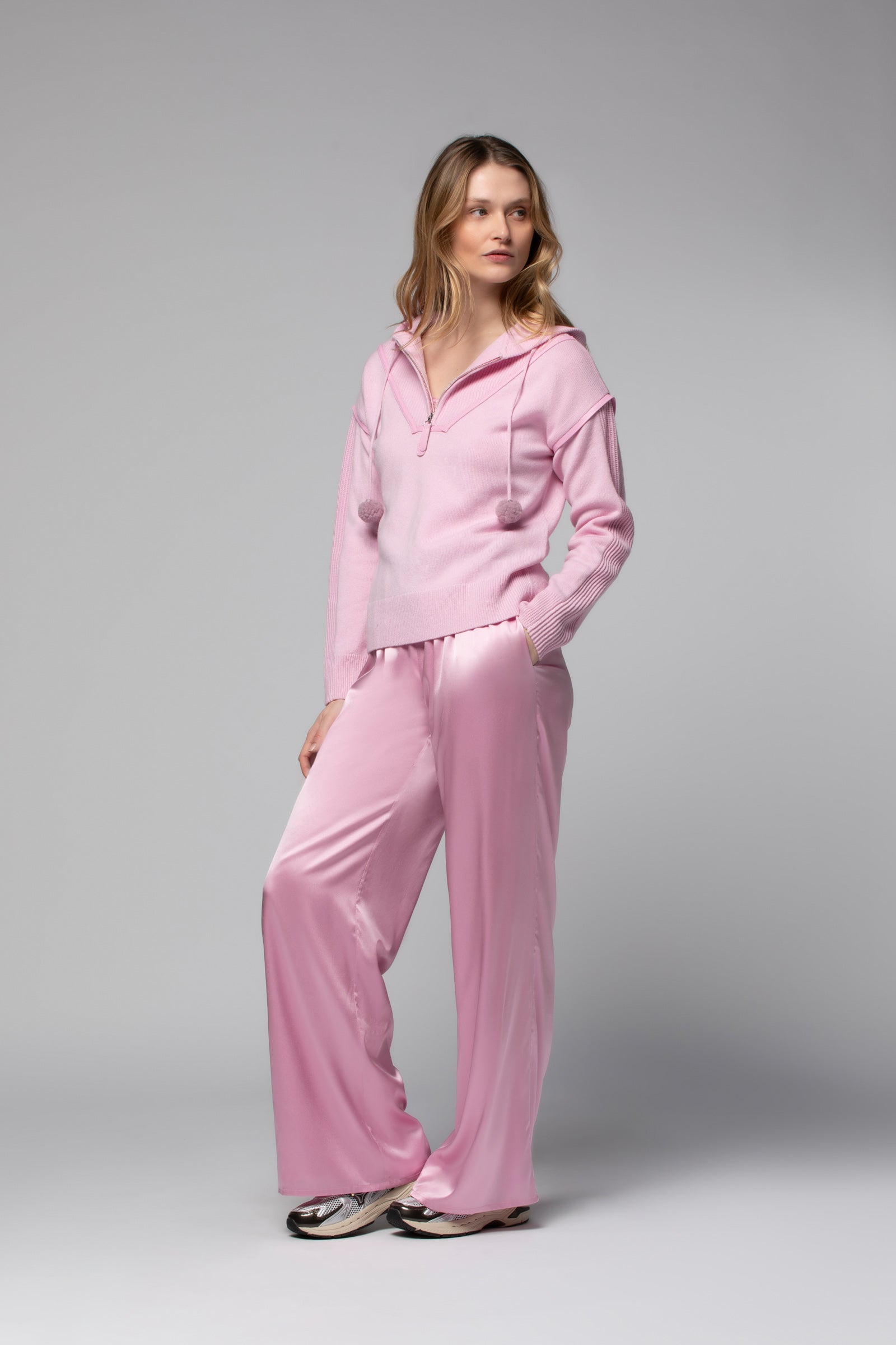 Cette maille est proposée en latte, gris clair, bleu nuit et rose.