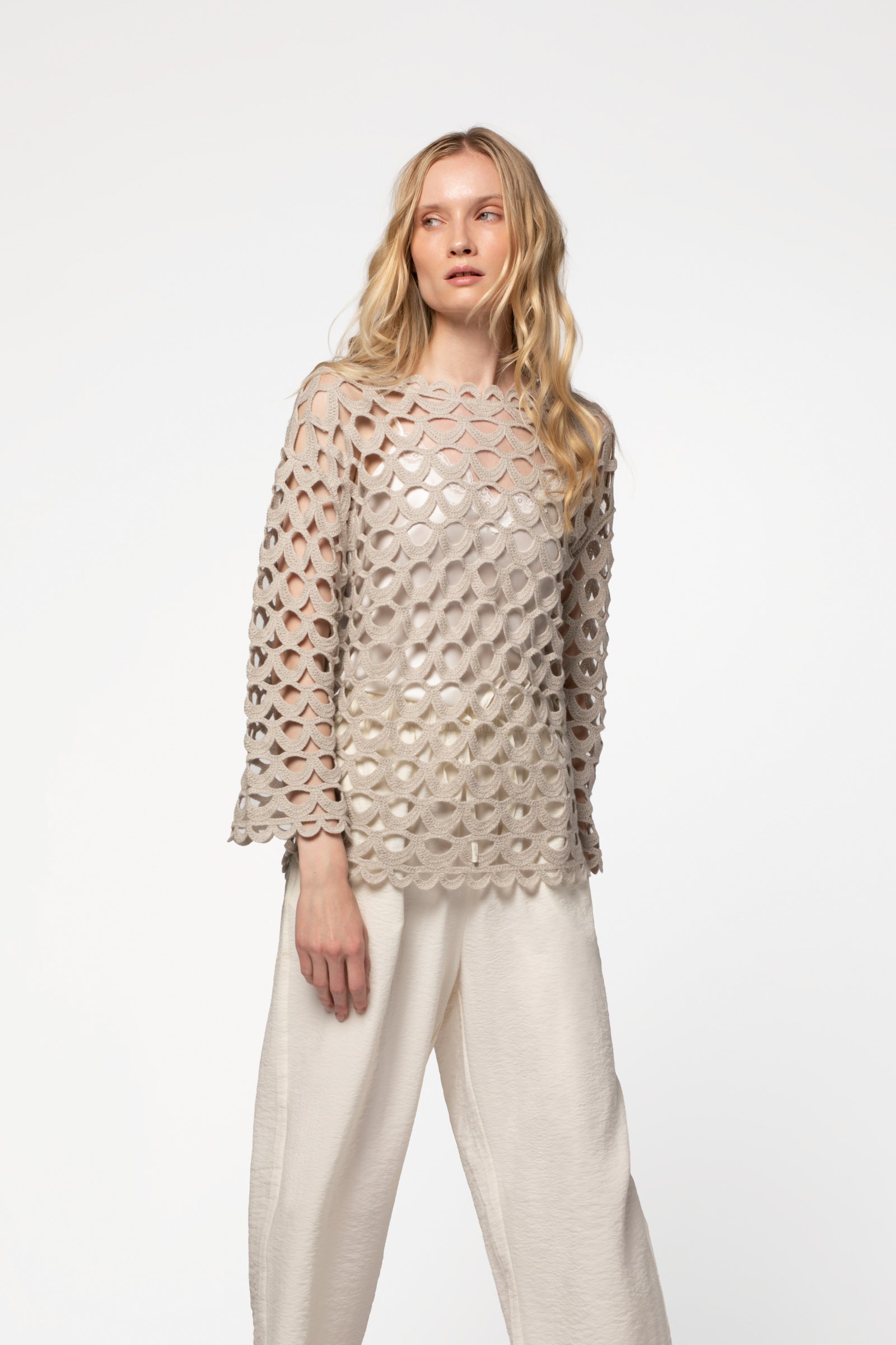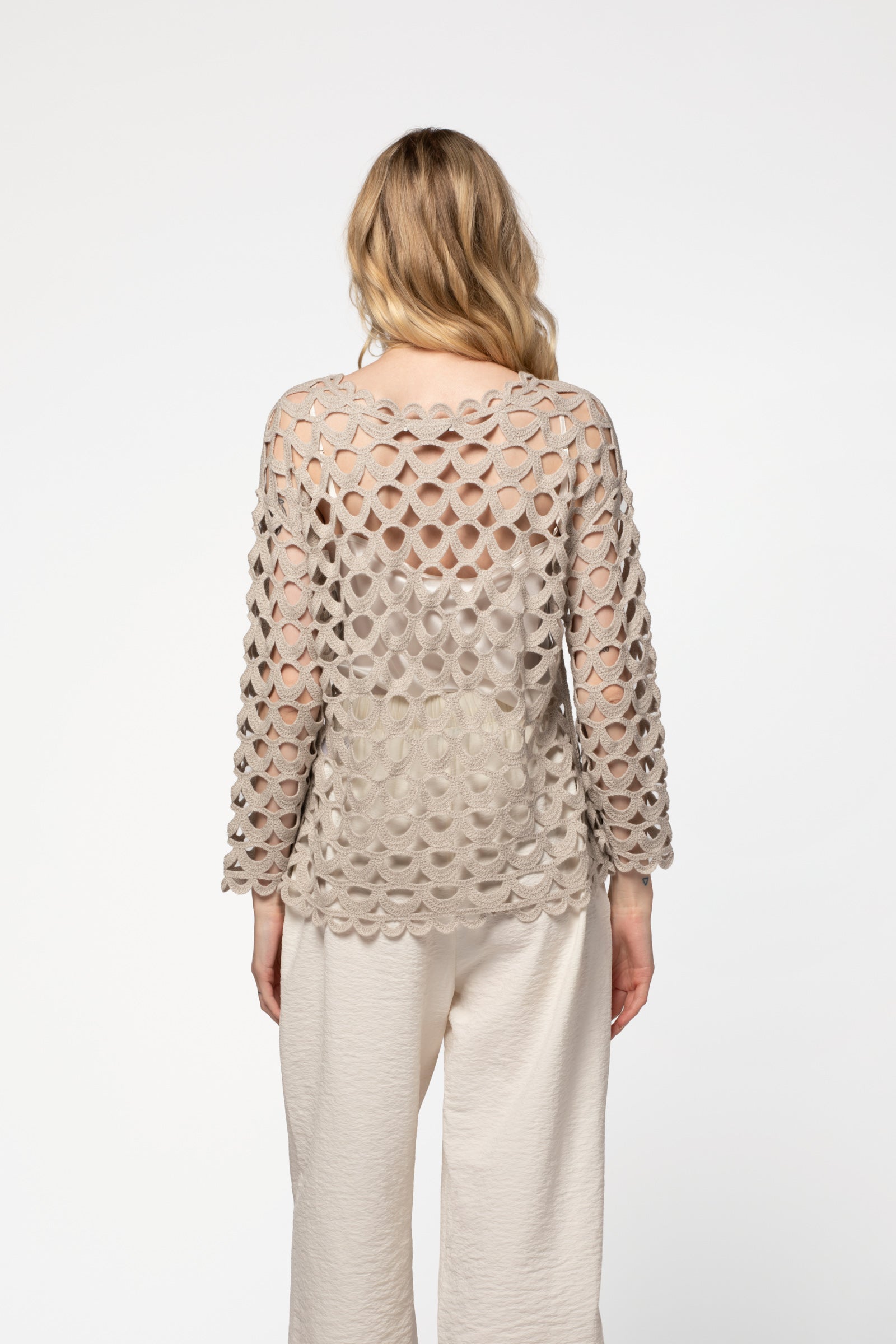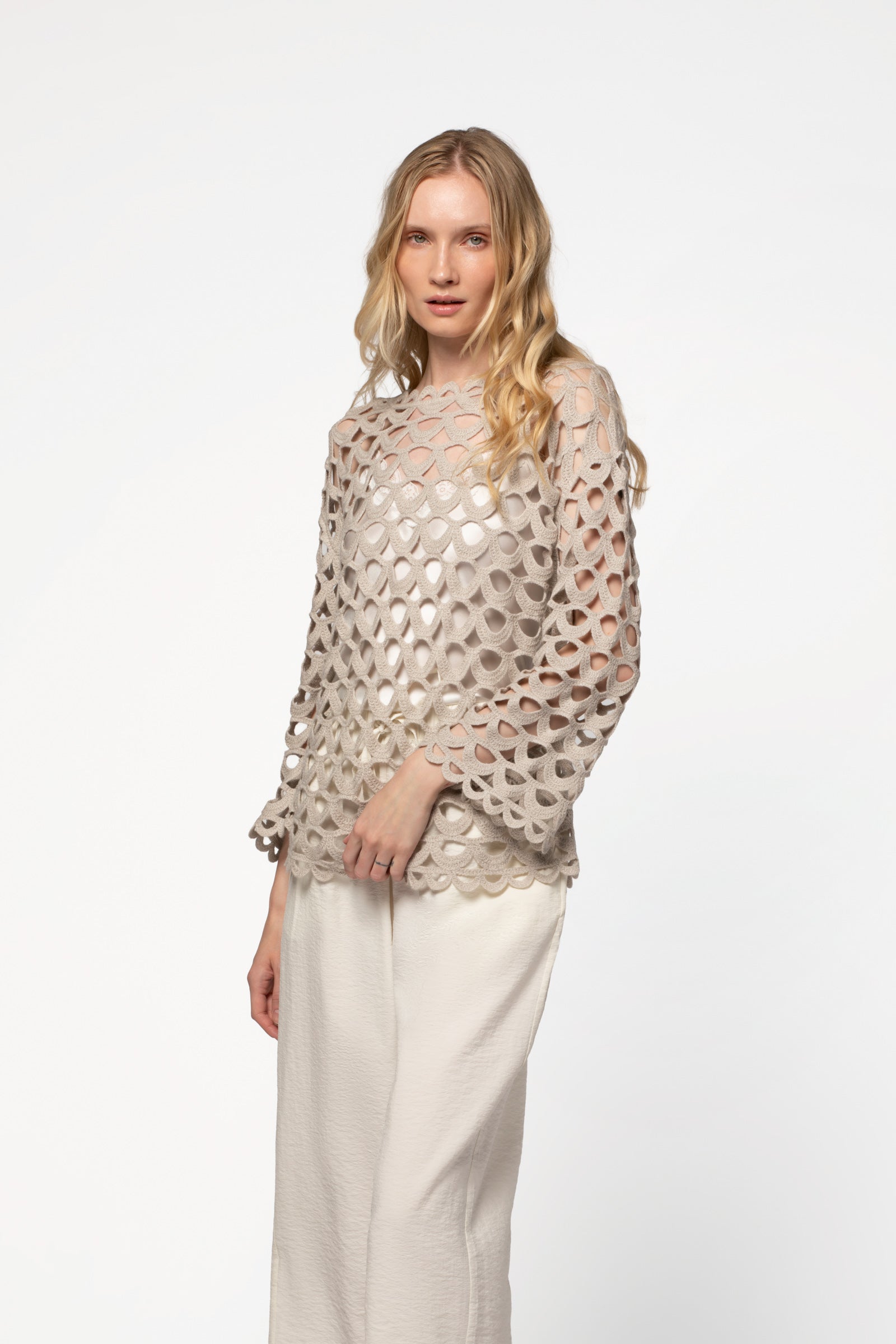 Pull manches longues effet crochet en laine et cachemire