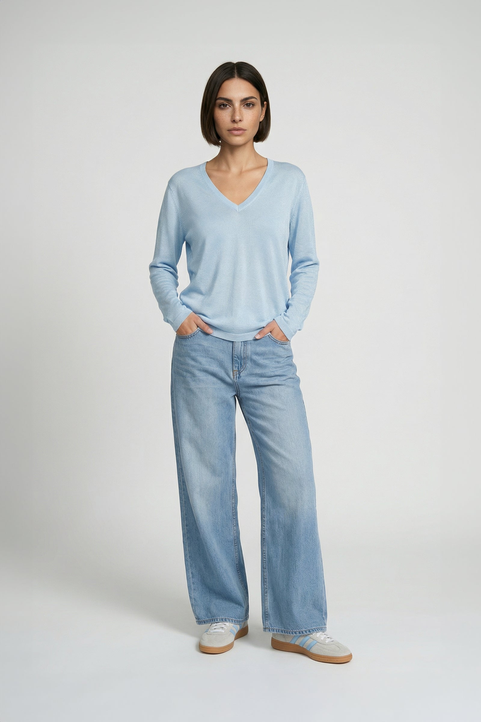 Notre pull à manches longues SONIA s’impose comme un essentiel de la belle saison. Confectionné dans un mélange de laine et soie, il conjugue confort et sophistication : la laine, appréciée pour sa douceur et ses propriétés thermorégulatrices, s’associe à la légèreté et à la fluidité de la soie pour donner naissance à une maille ultra-fine et aérienne.