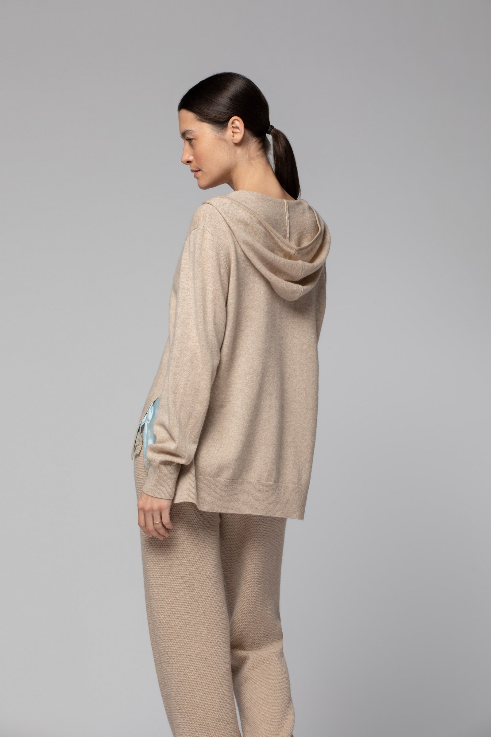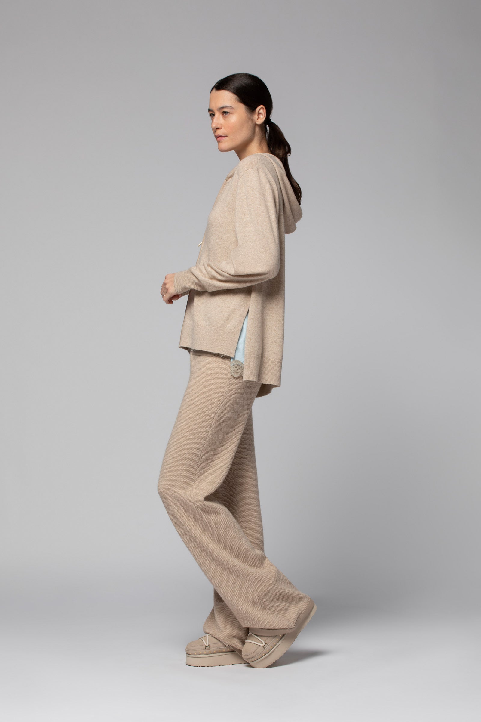 Avec sa coupe ample confortable et ses lignes épurées, notre gilet à manches longues GARANCE s’impose comme une pièce essentielle du vestiaire féminin. Il se distingue par sa fermeture zippée bordées de finitions en cuir, qui insufflent une touche sporty-chic à l’élégance discrète. Tricoté dans un superbe jersey de laine et cachemire, il séduit par son design asymétrique et ses larges fentes latérales, qui apportent du mouvement et structurent la silhouette avec douceur. Pratique, il est doté d’une large capuche enveloppante, parfaite pour affronter les journées venteuses de la saison.