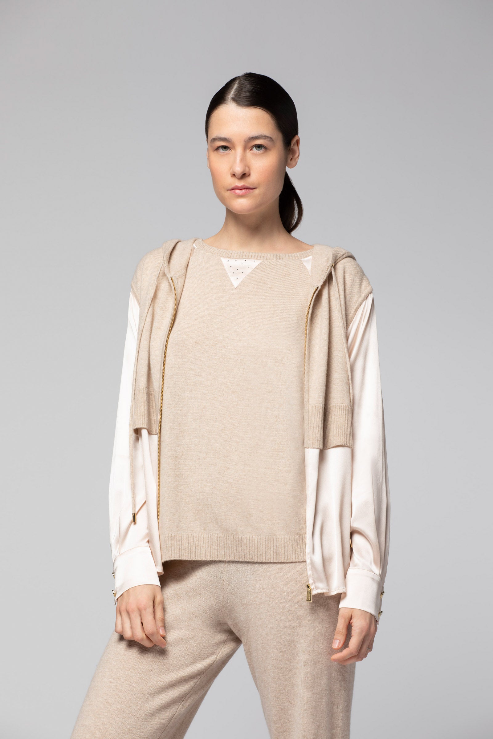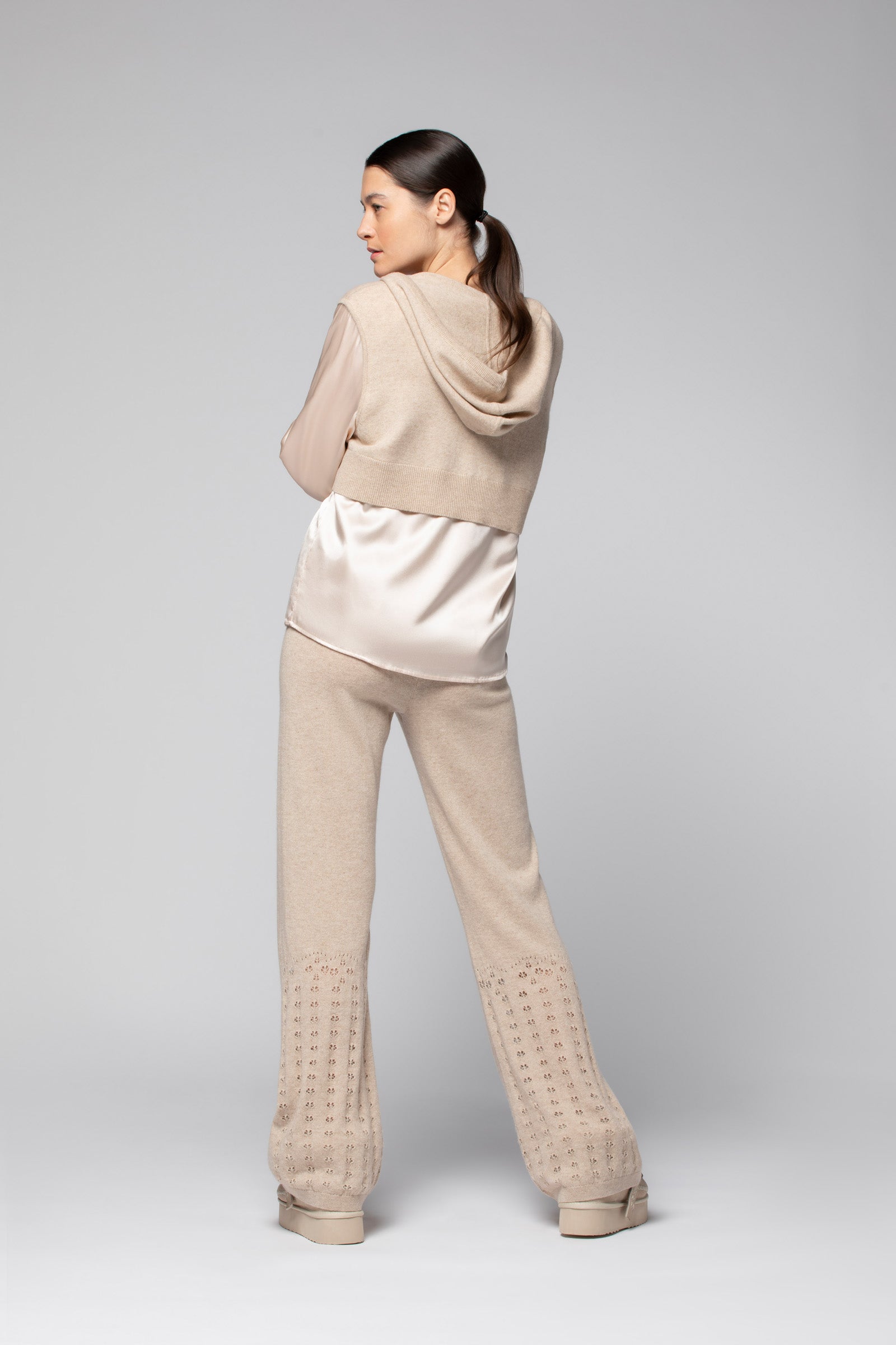 Ce gilet à capuche pour femme se porte aussi bien avec un jean, un pantalon en cachemire ou un pantalon en soie de la collection MAX&MOI.