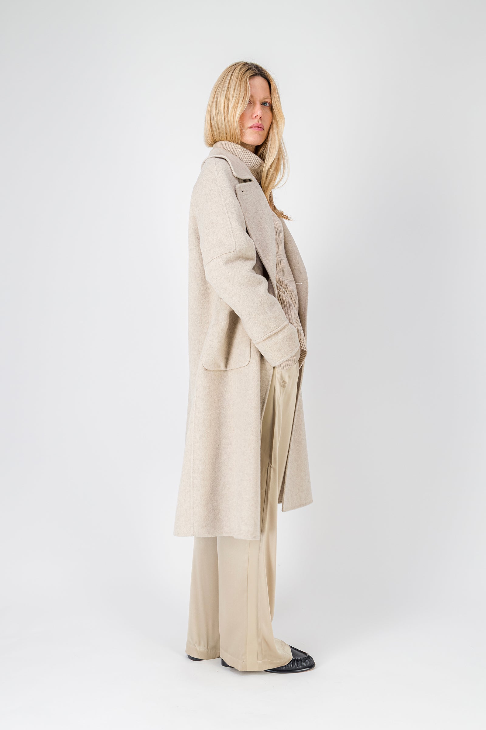 Notre manteau long MAC est un modèle à coupe droite et structurée. Un col à revers, deux poches plaquées à l’avant et une fermeture boutonnée par deux boutons. On adore les revers aux poignets ainsi que les détails boutonnés au dos qui apportent une finition soignée et une allure contemporaine. A matcher avec tous vos looks sans exception pour un style moderne au chic effortless.