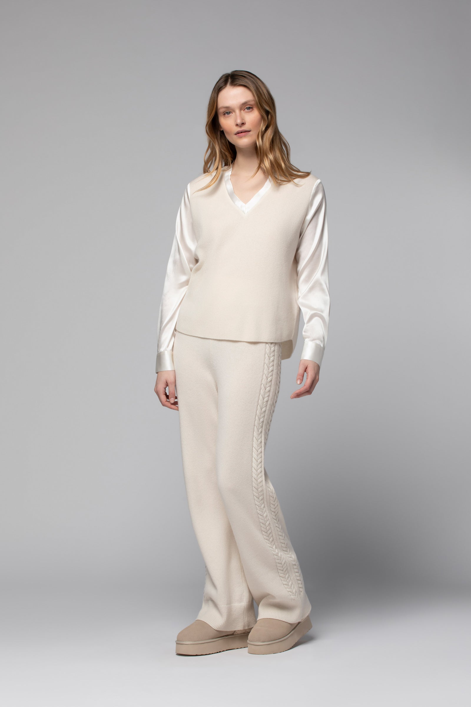 Ce pantalon en cachemire pour femme deviendra rapidement un essentiel de votre vestiaire. Porté avec une maille cachemire ou une chemise en soie, il s'accordera parfaitement à toutes les pièces de votre vestiaire. Il est tout simplement irrésistible associé avec notre pull coordonné PARFAITE.