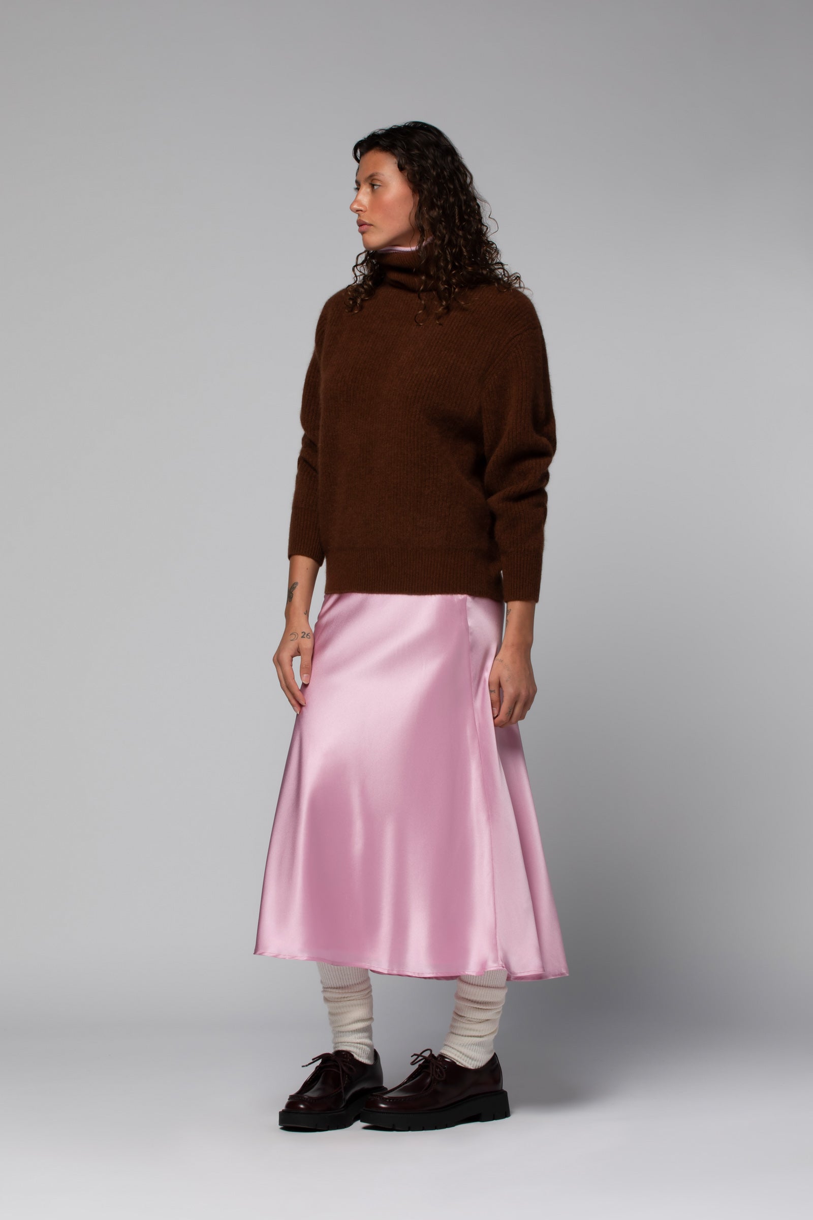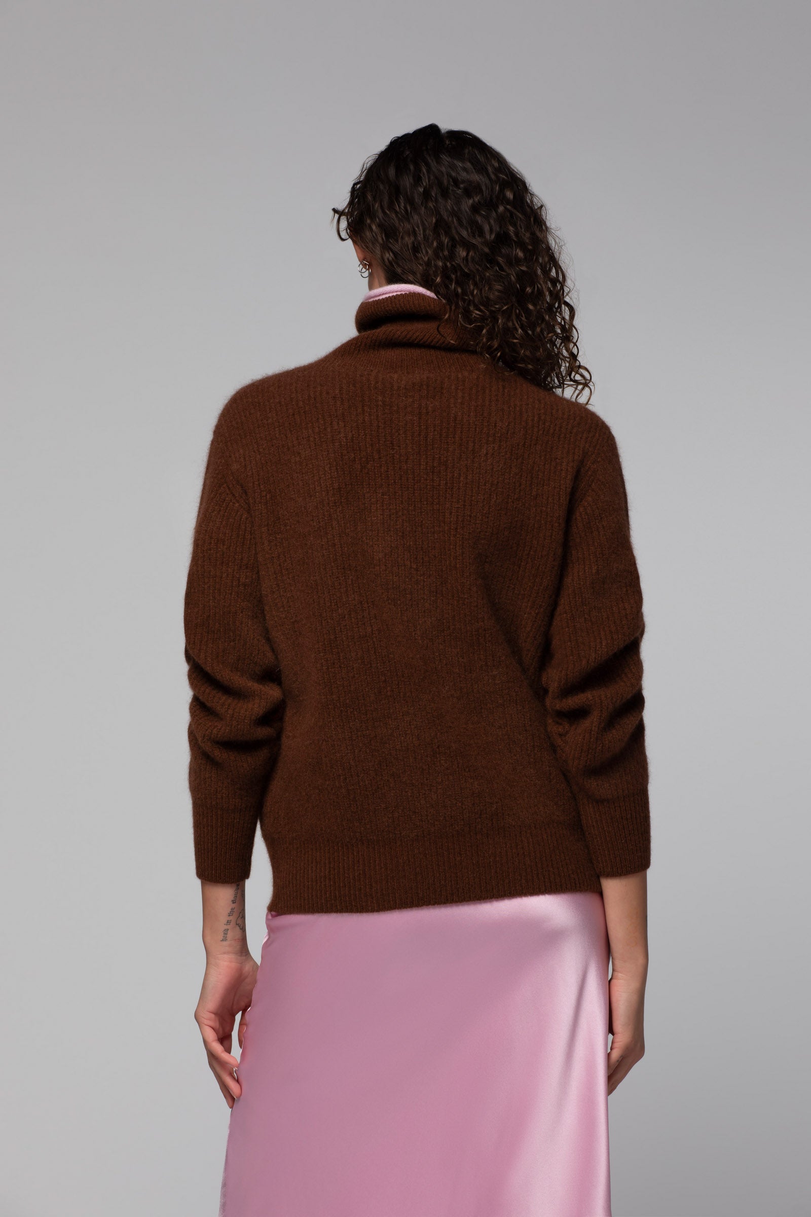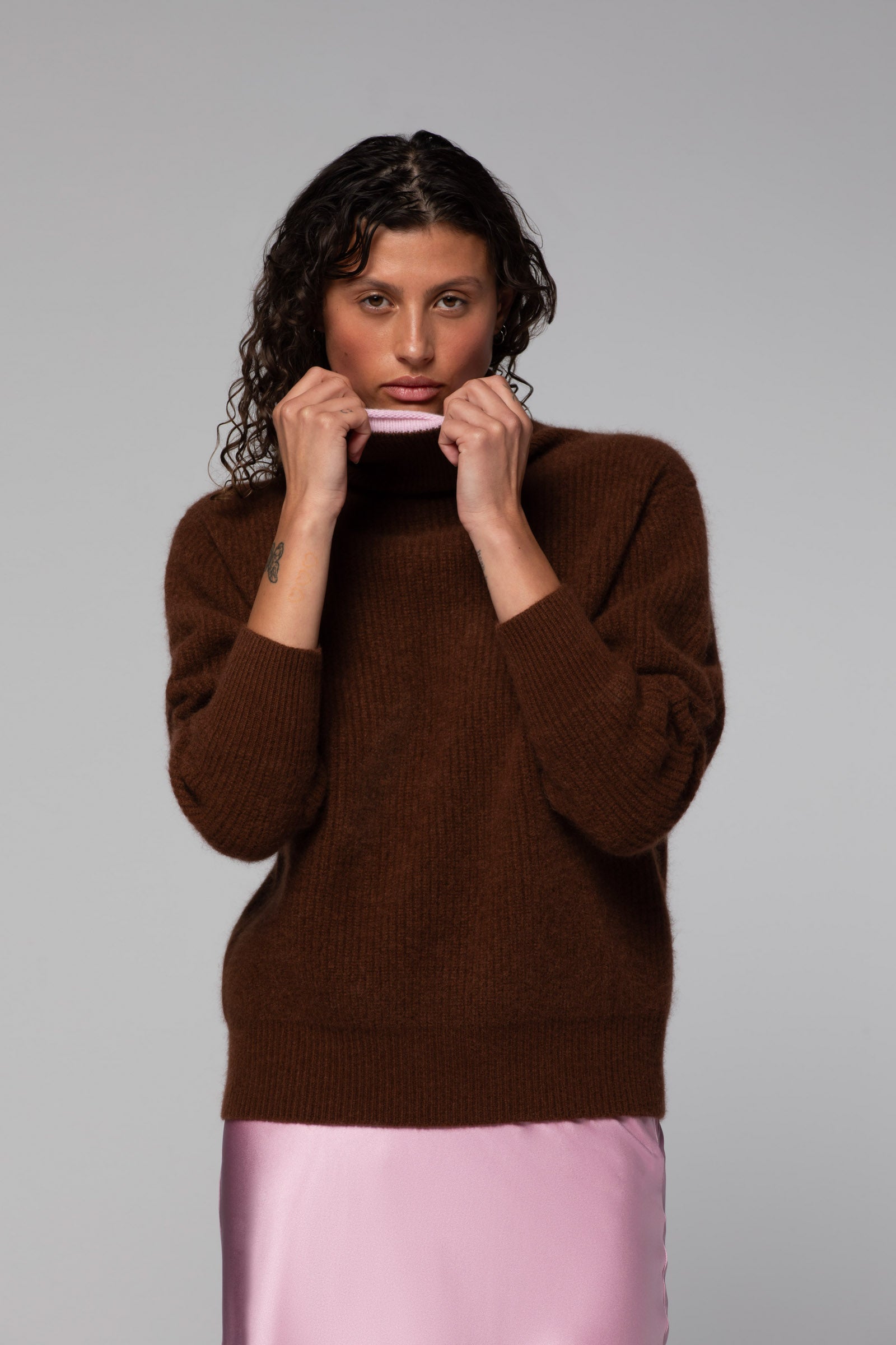 Pull à col roulé en laine et cachemire avec manches retroussées