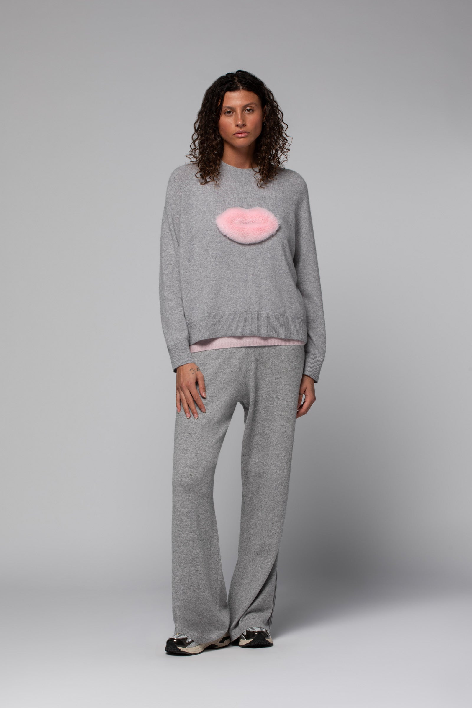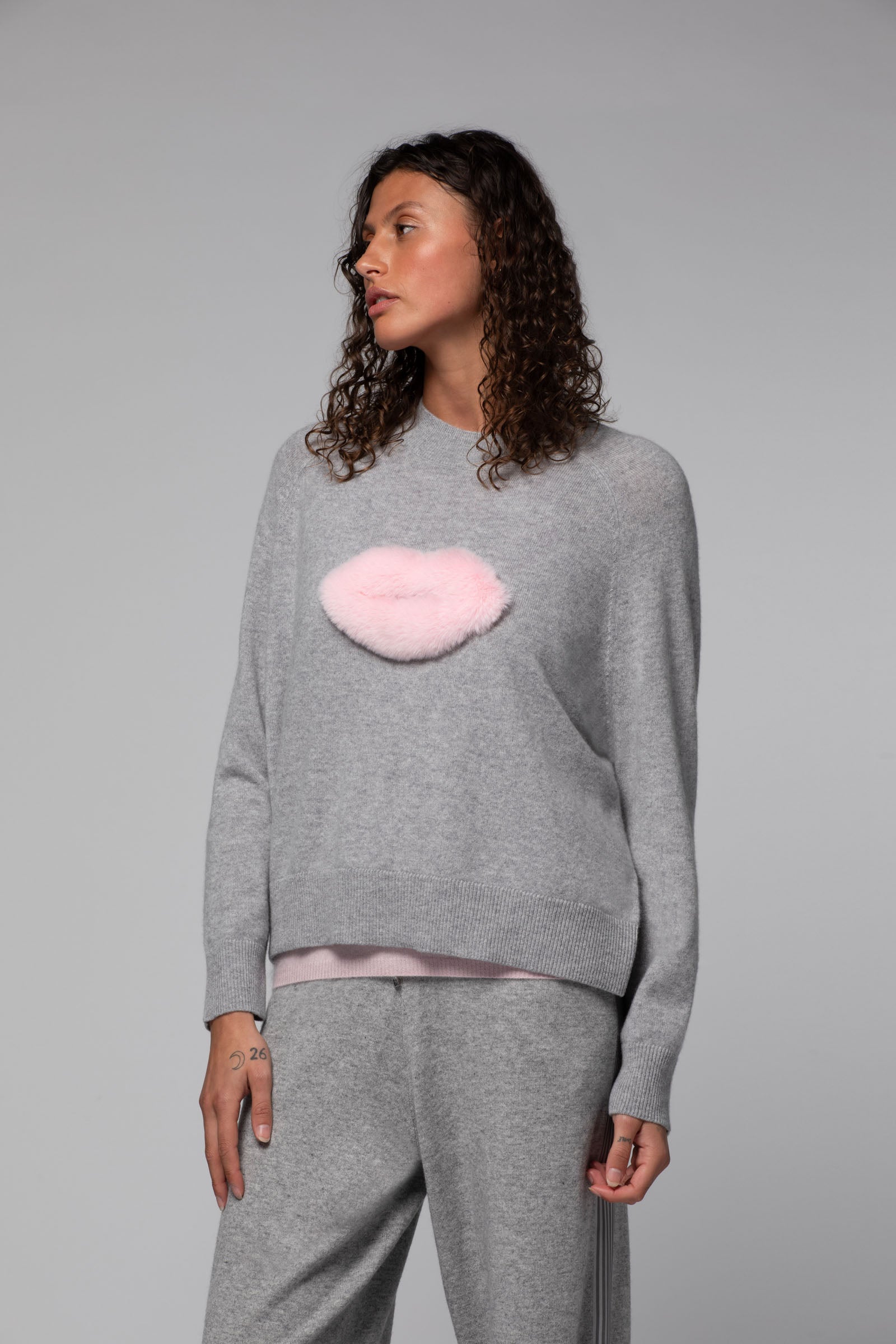 Pull en laine et cachemire avec bouche en fausse fourrure