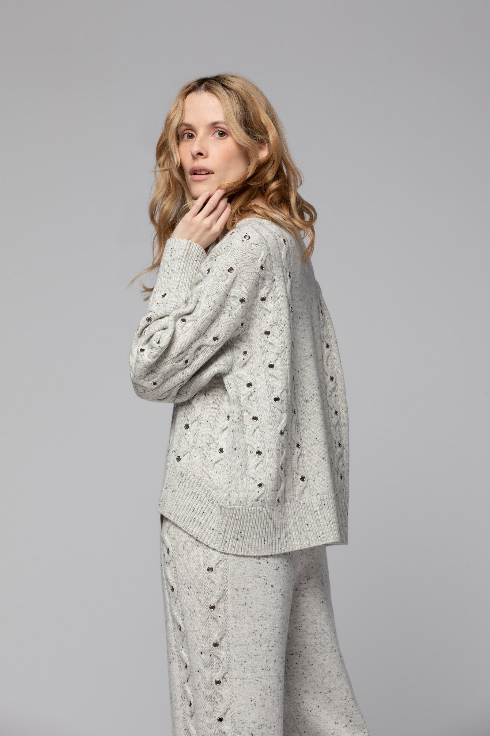Pull en laine et cachemire avec œillets