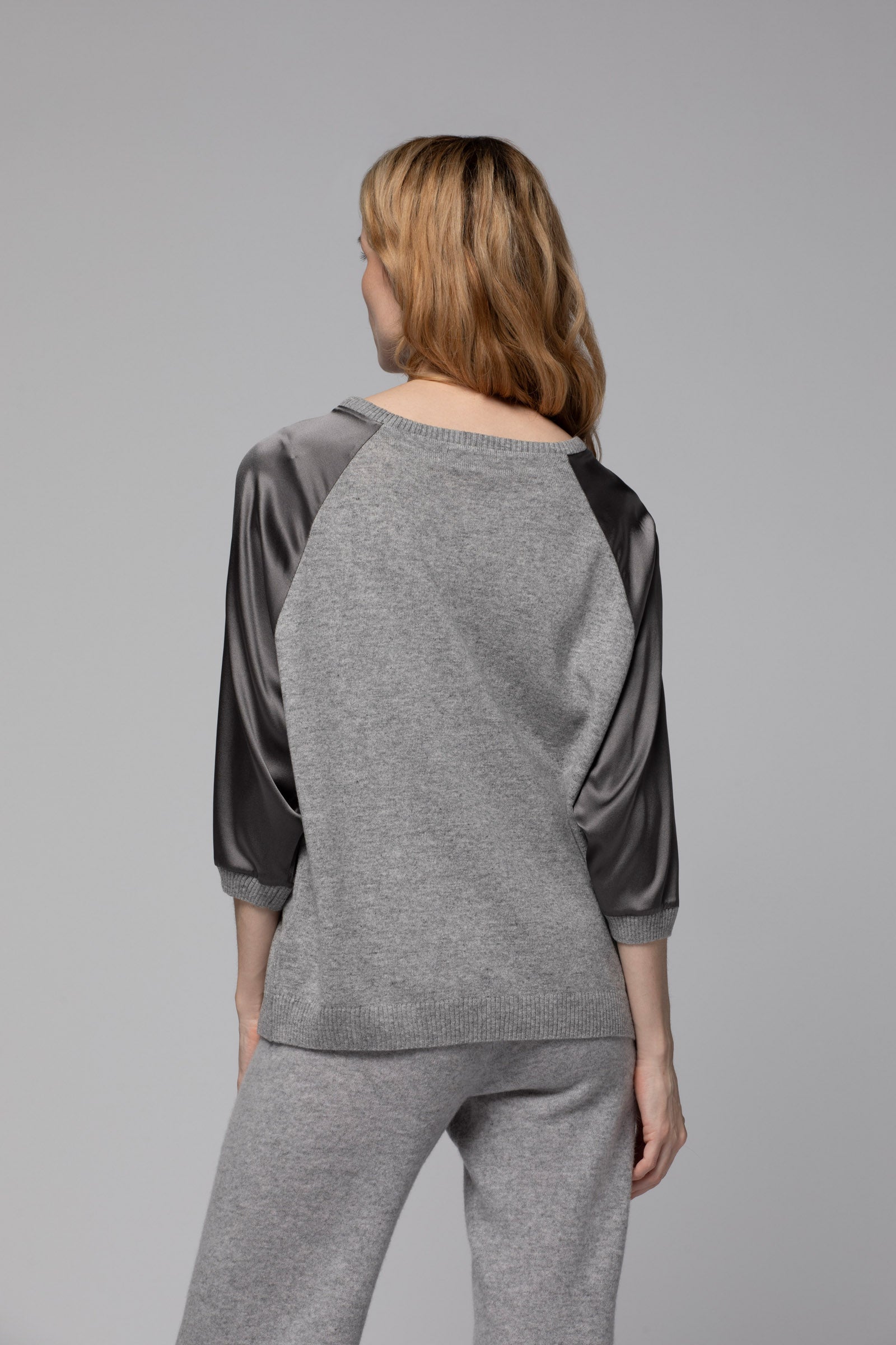 Pull en laine et cachemire avec manches trois-quarts en soie