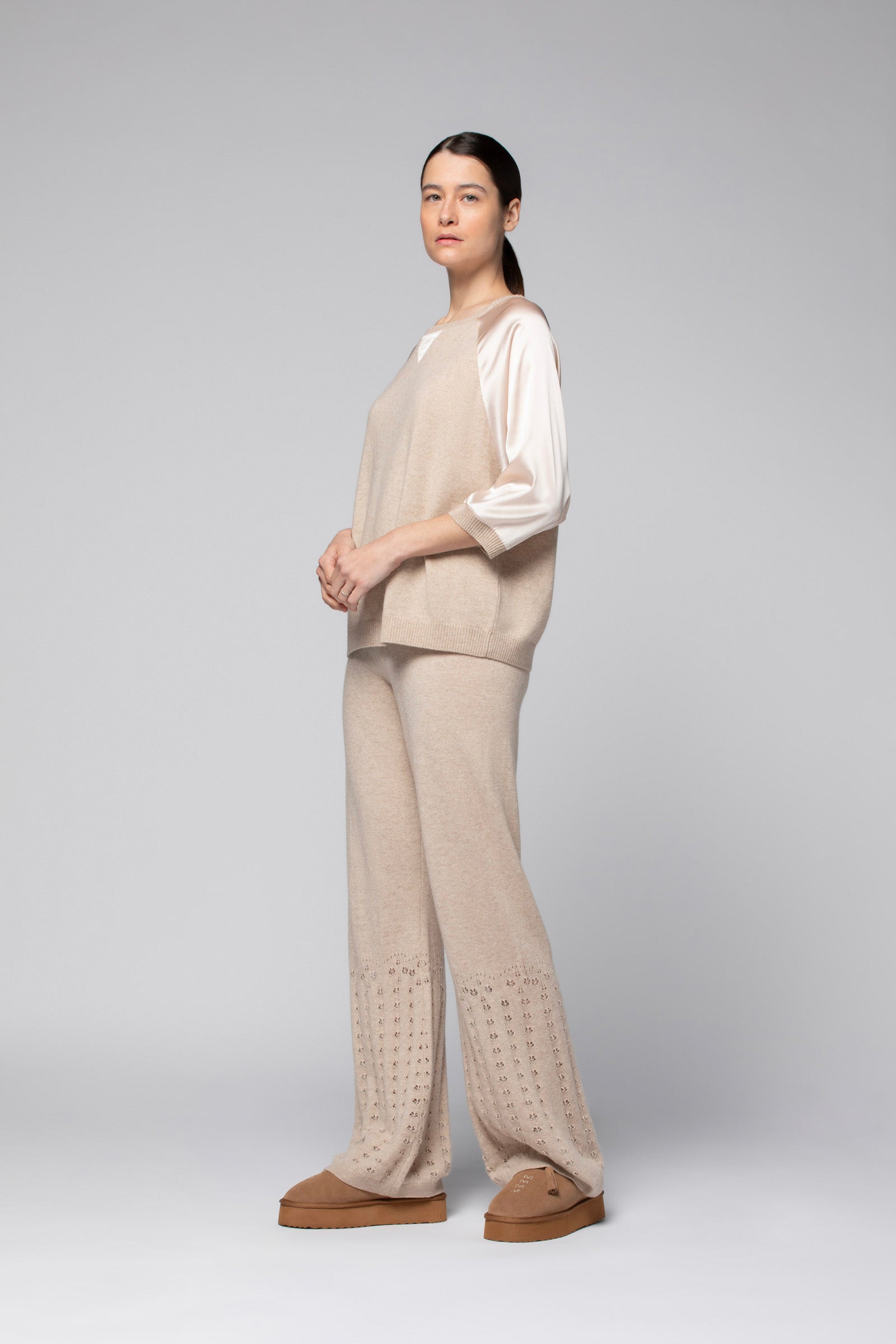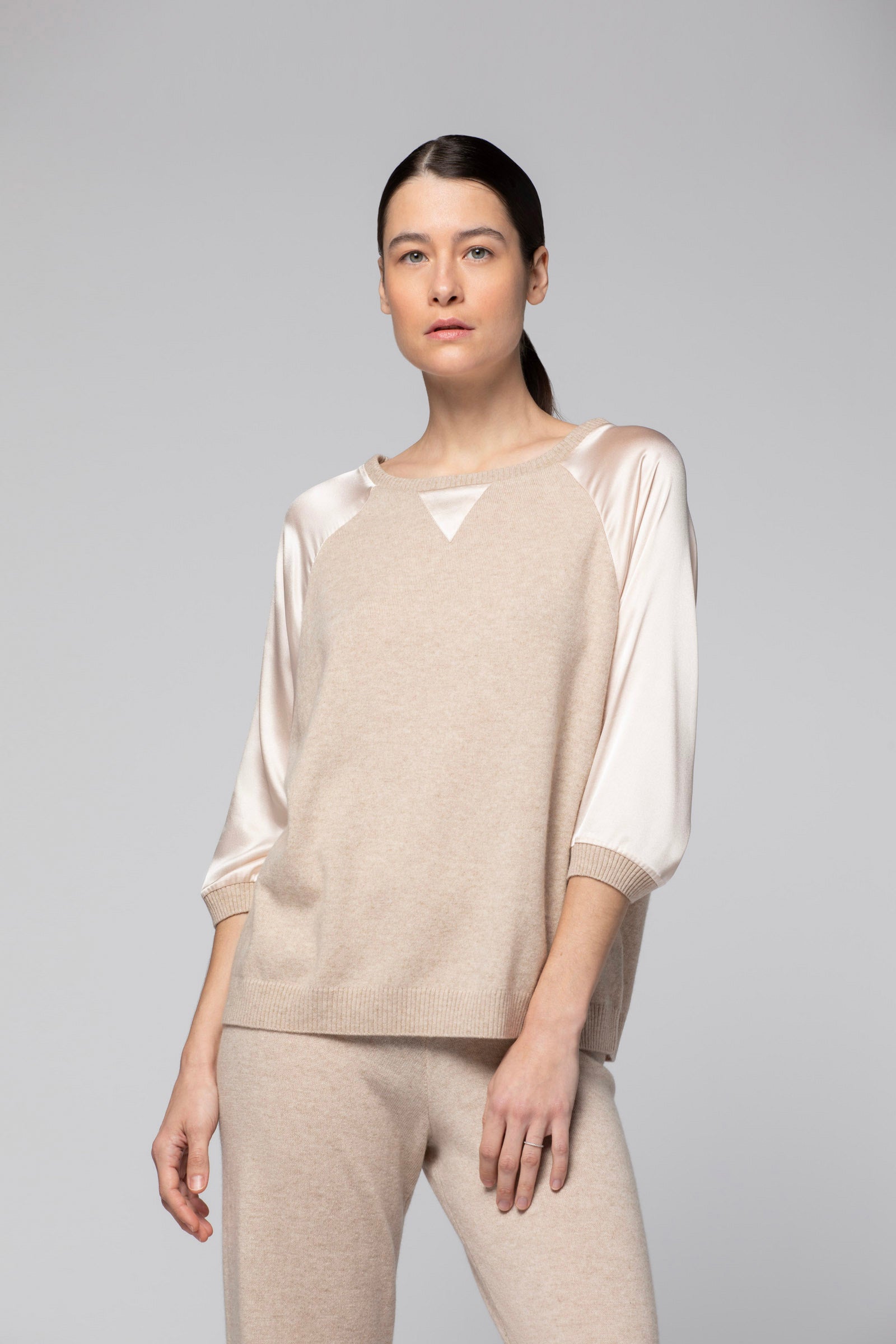 Notre pull PIA est un superbe modèle bi-matière, qui associe une douce maille en laine et cachemire sur le corps à la légèreté de la soie sur les manches. À la fois féminin et décontracté, il se compose d'une coupe légèrement amplifiée, de manches trois-quarts raglan, d'un joli col rond et de délicates finitions en maille côtelée qui structurent l'allure avec finesse. Le détail signature MAX&MOI ? Un empiècement en soie en forme de triangle à l'encolure, qui insuffle une touche d'éclat irrésistible.