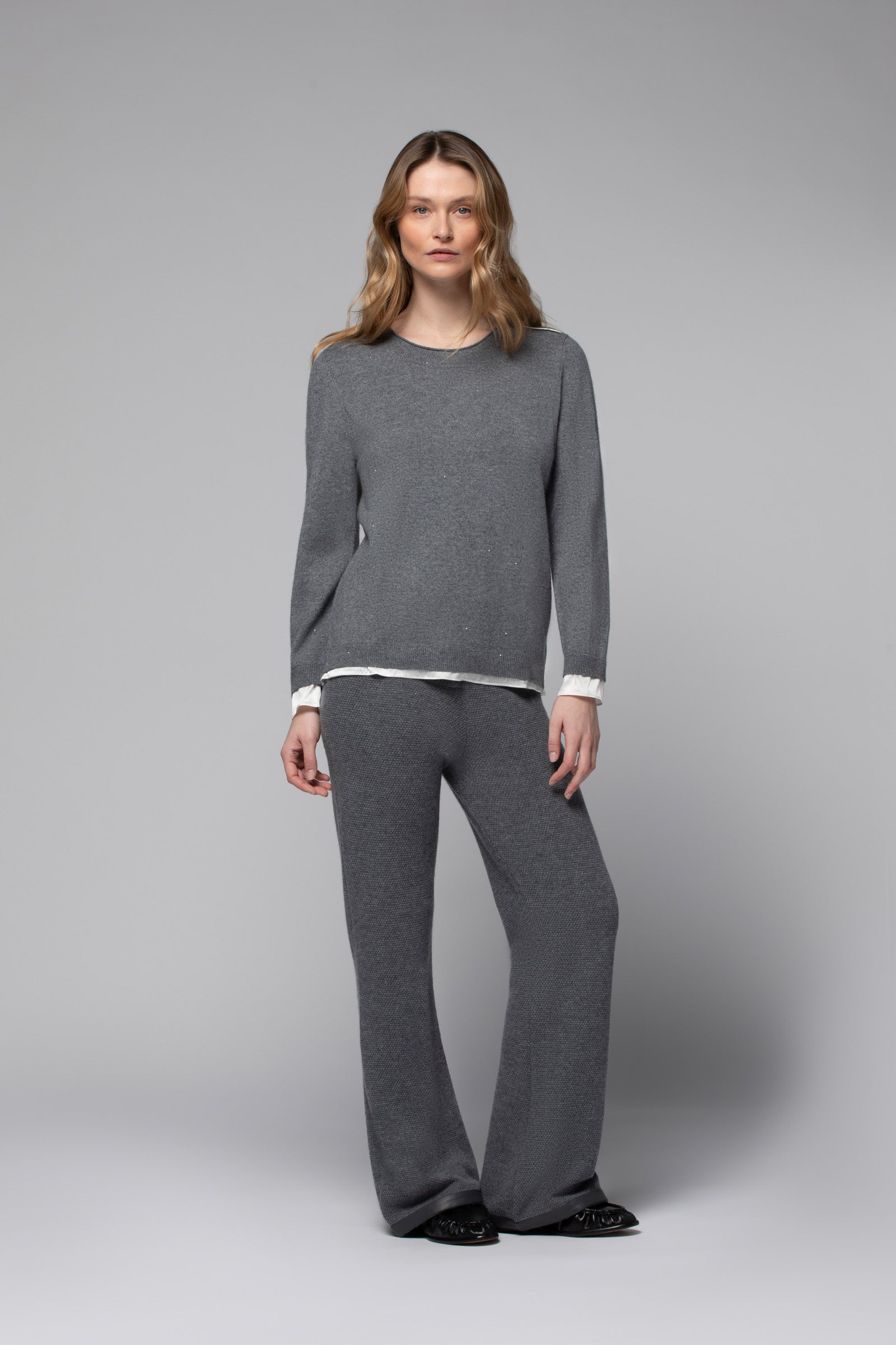 Ce pantalon évasé pour femme est décliné en gris anthracite, noir, chocolat et latte.