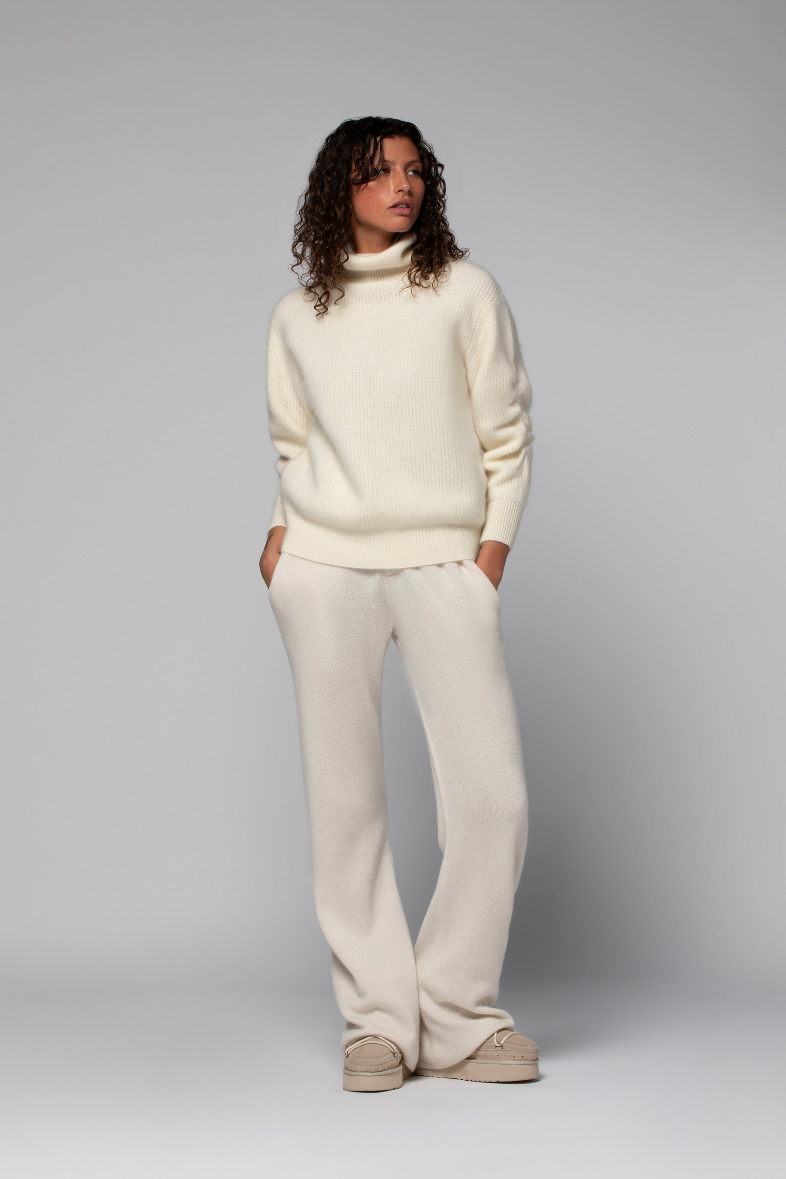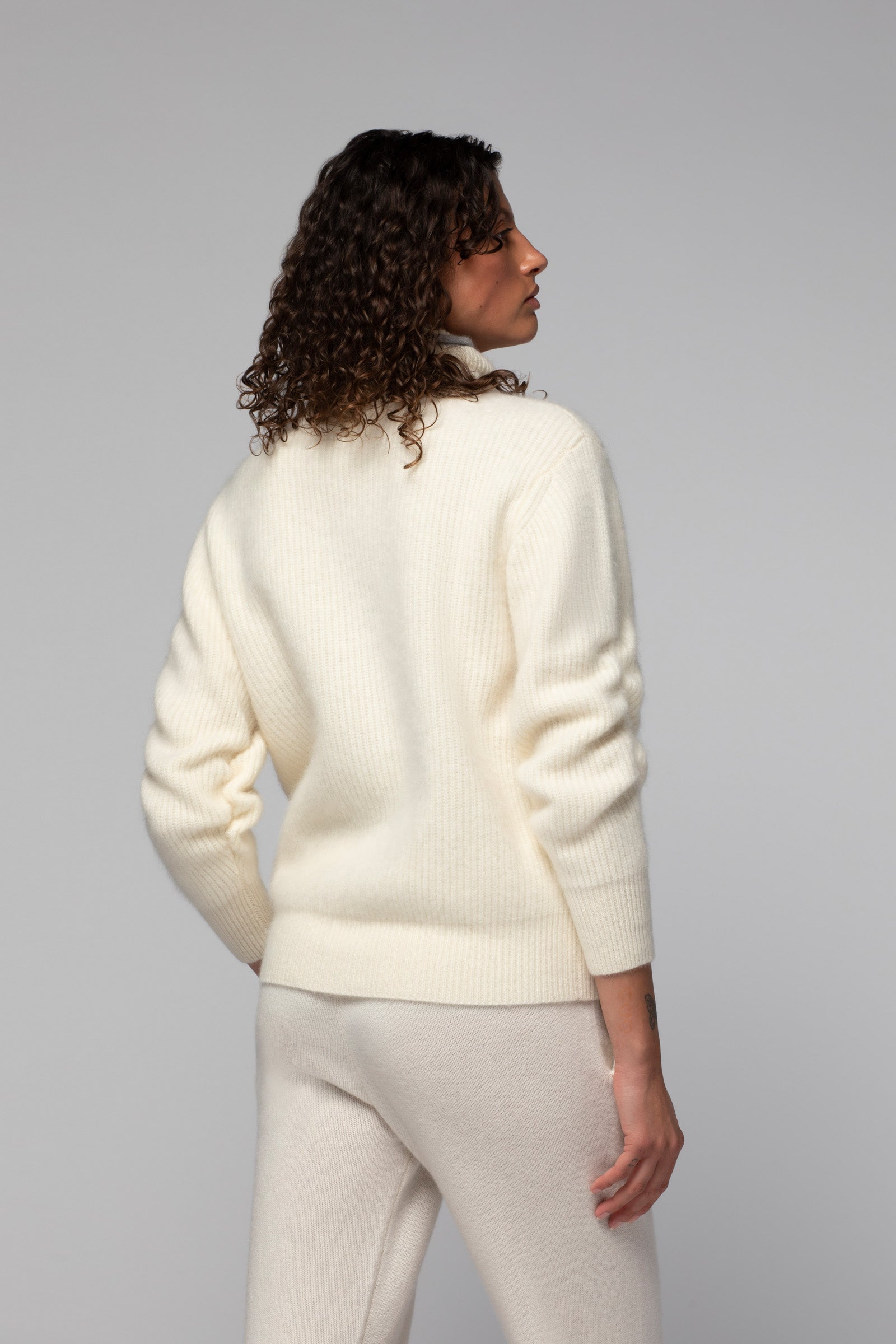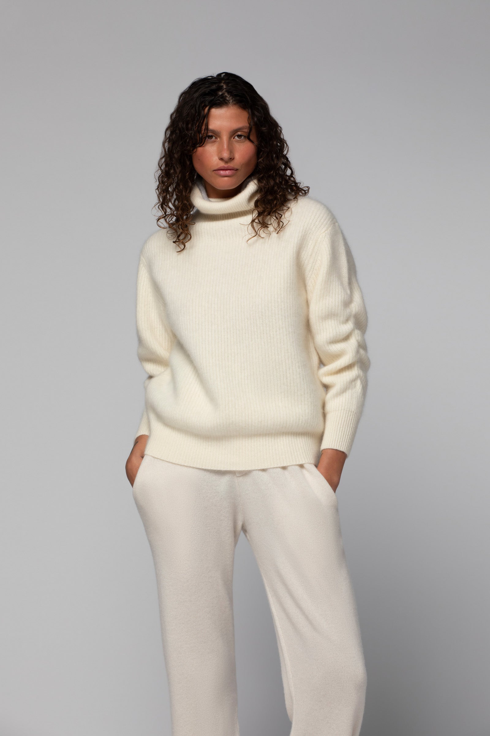 Notre pull PALOMA est un essentiel du vestiaire féminin. Confectionné dans un doux mélange de laine et cachemire, il séduit par sa maille en côte anglaise, à la texture irrésistible, qui signe une allure raffinée. Il joue des volumes avec justesse grâce à sa coupe ample, son généreux col roulé et ses manches longues retroussées, dans un jeu de plis à la sophistication naturelle. Une finition roulottée contrastée, au col, adoucit ses lignes et vient parfaire le modèle.