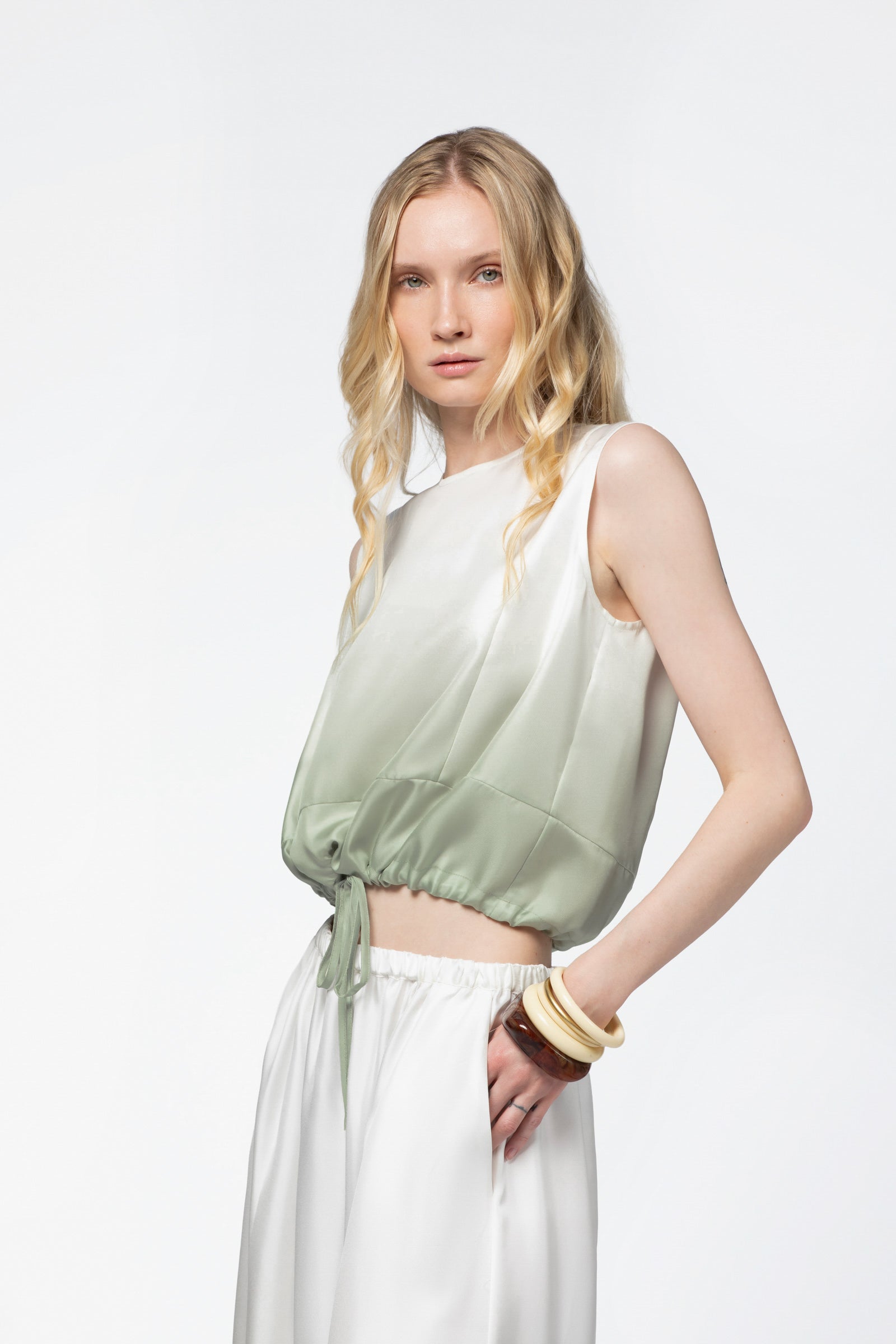 Top sans manches en soie à imprimé tie-and-bye avec bas ajustable