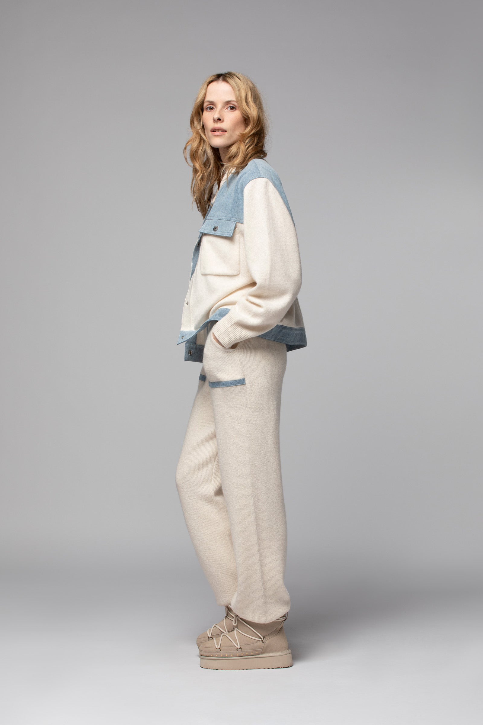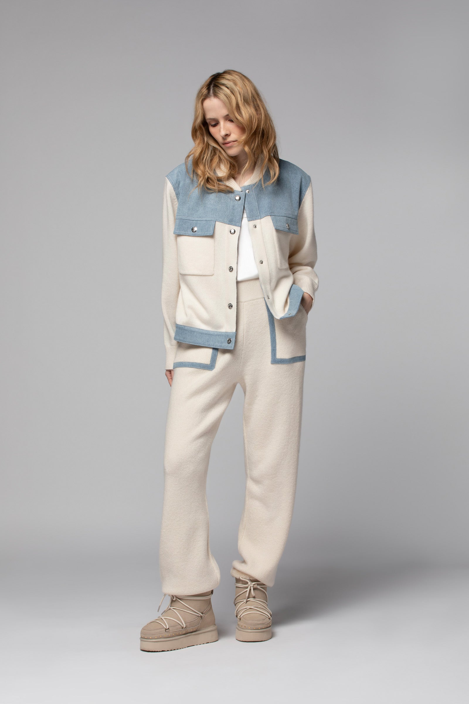 Facile à vivre, cette veste en maille et denim se prête à toutes vos envies : en total look avec un pantalon en denim pour une allure assumée, ou associée à notre iconique legging en cuir pour une touche plus audacieuse. Portée avec notre pantalon en cachemire BAILA, elle compose une allure parfaitement irrésistible.