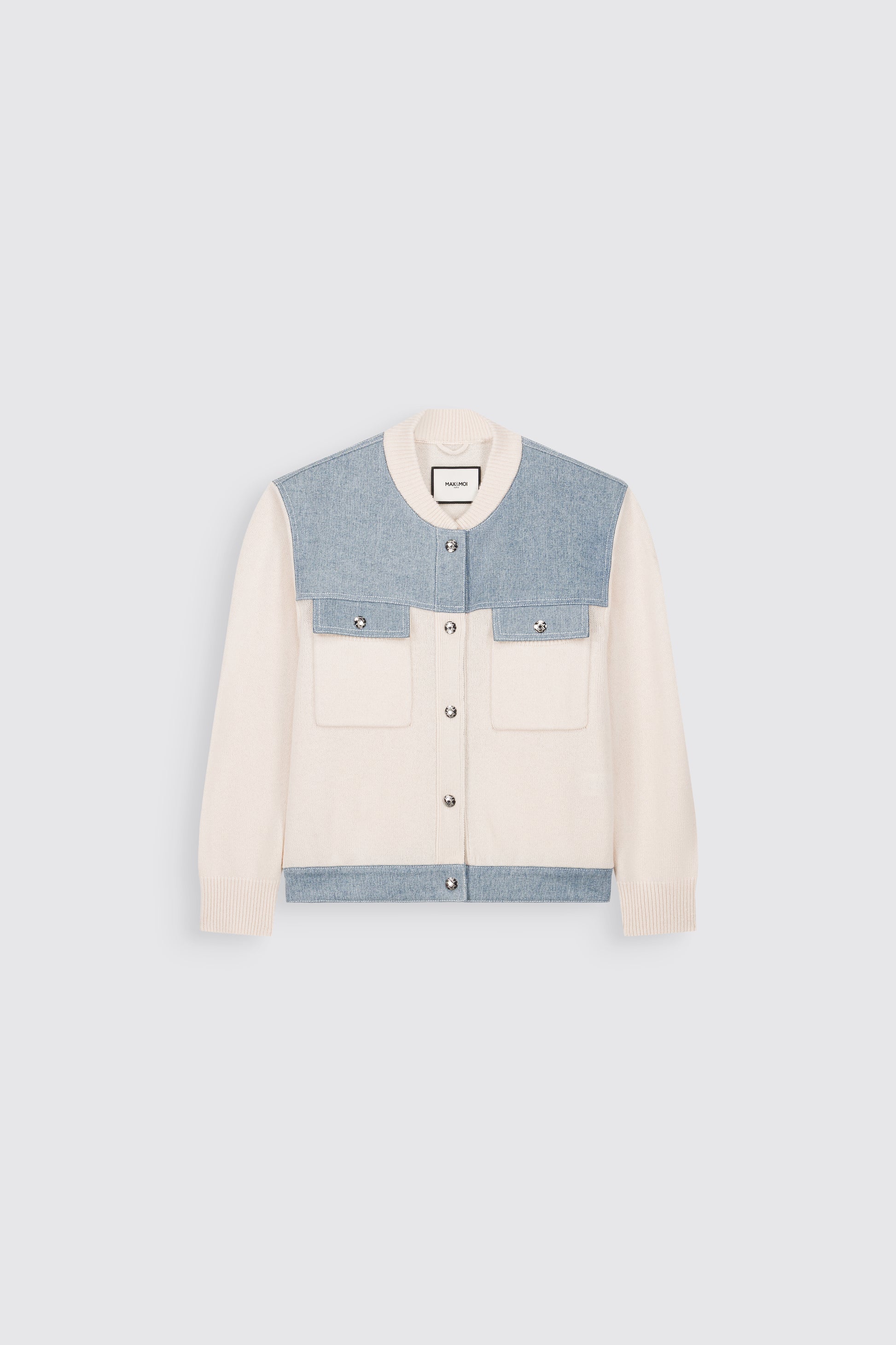 Pièce maîtresse du vestiaire, notre veste VALENCIA revisite avec élégance l’indémodable veste en jean pour femme. Confectionnée dans une douce maille en laine et cachemire, elle se distingue par ses empiècements en denim, qui structurent l'allure et modernisent ses lignes. Ses poches plaquées à la poitrine, rehaussées d'un rabat en denim, affirment son caractère résolument urbain. De jolis boutons bijoux signatures, gravés du monogramme de la Maison, viennent parfaire le modèle.